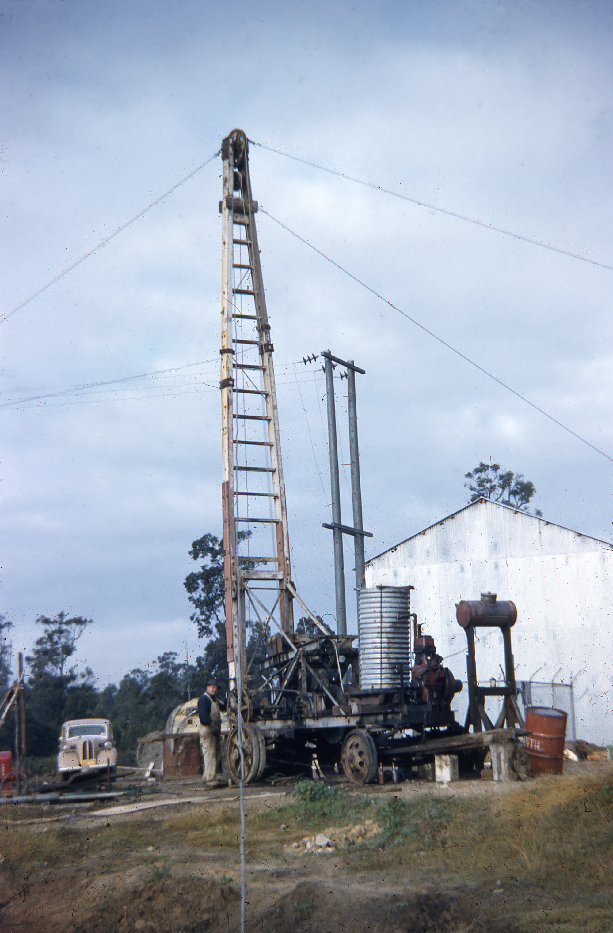 Drilling rig, stowage material borehole, April 1956 (April 1956), [RVRM_Slide_029]. Living Histories, accessed 05/04/2026, https://livinghistories.newcastle.edu.au/nodes/view/110345