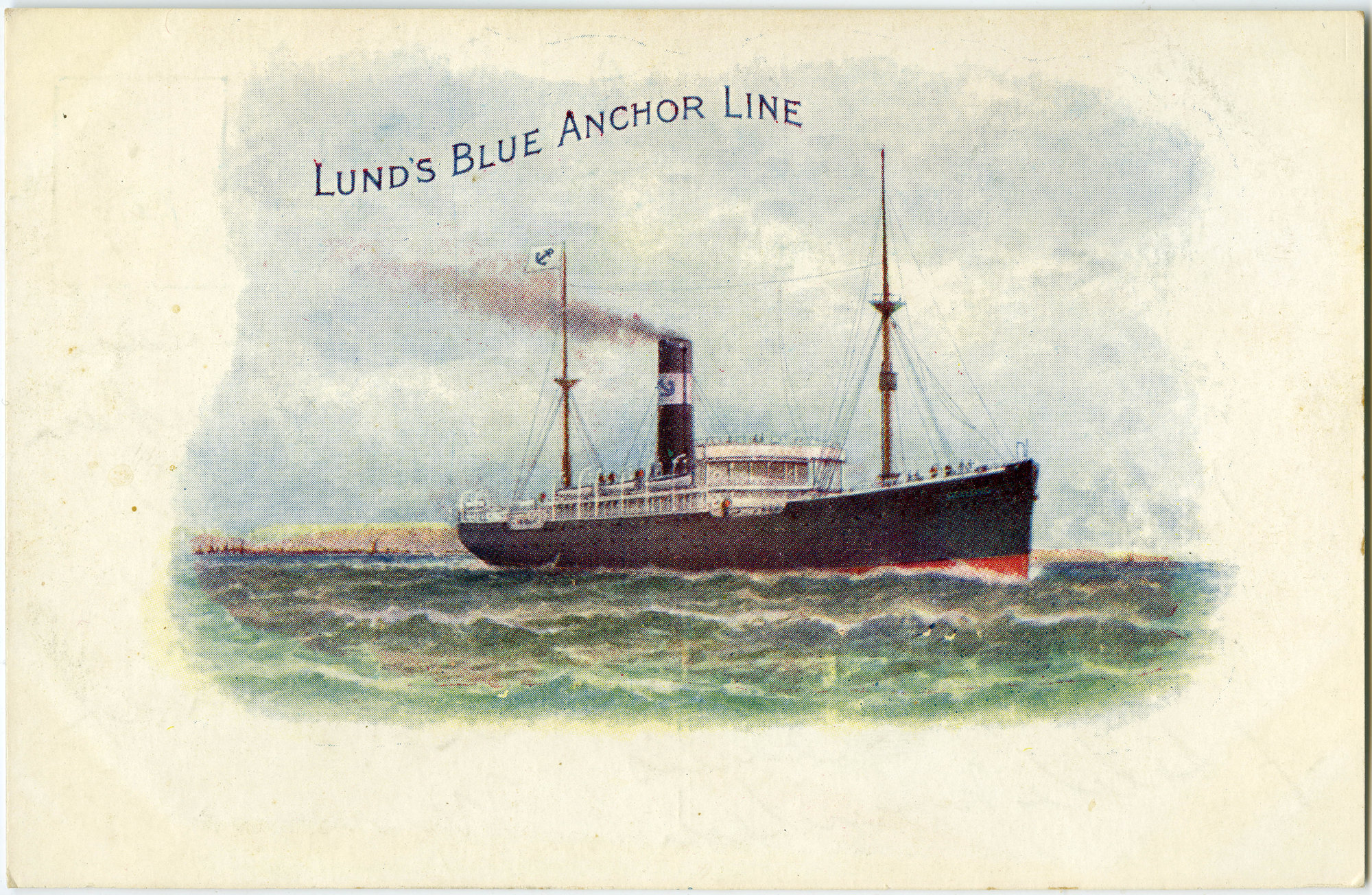 Postcard of a liner belonging to the Lund Blue Anchor Line