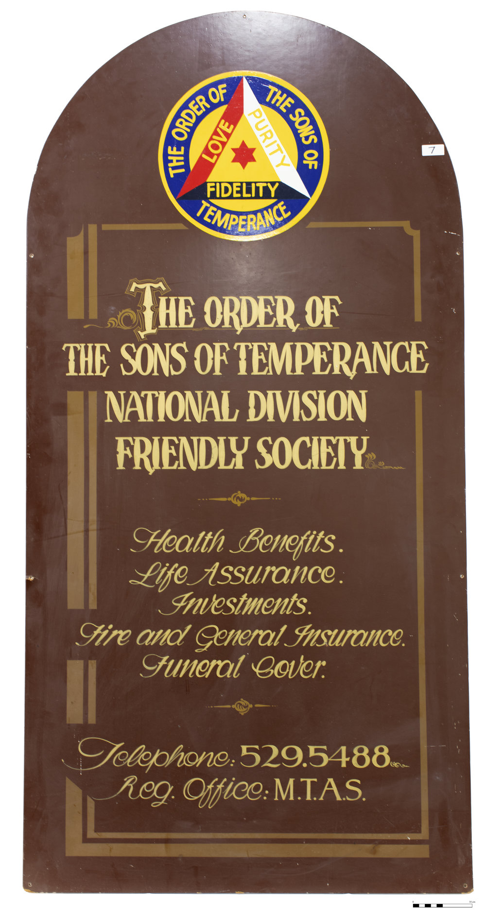 Metal signage panel for The Order Of The Sons of Temperance National Division Friendly Society