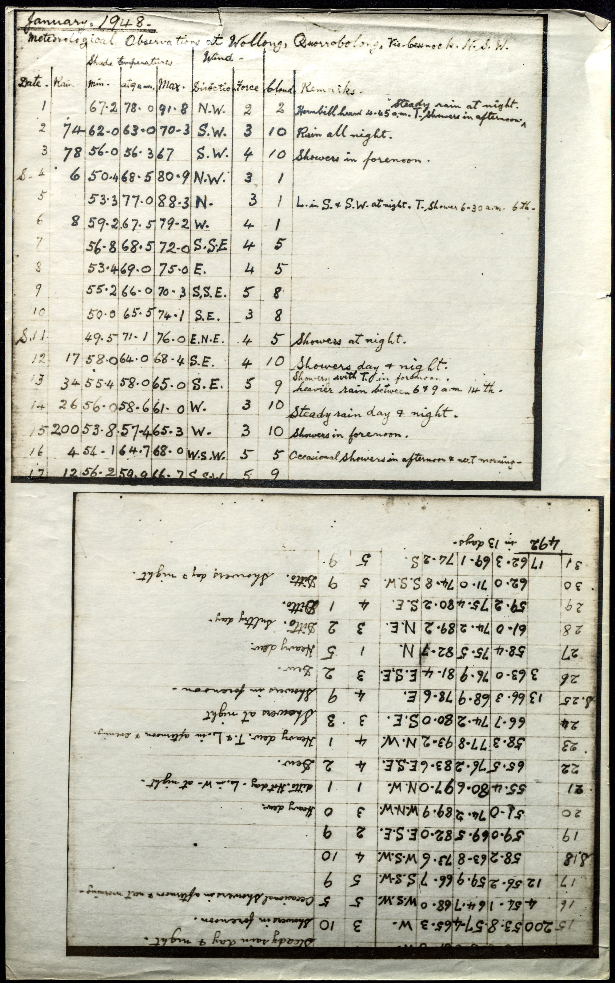 Meteorological Observations at Wollong, Quorrobolong, via Cessnock N.S.W. 1948-1956 [Copies from microfilm]