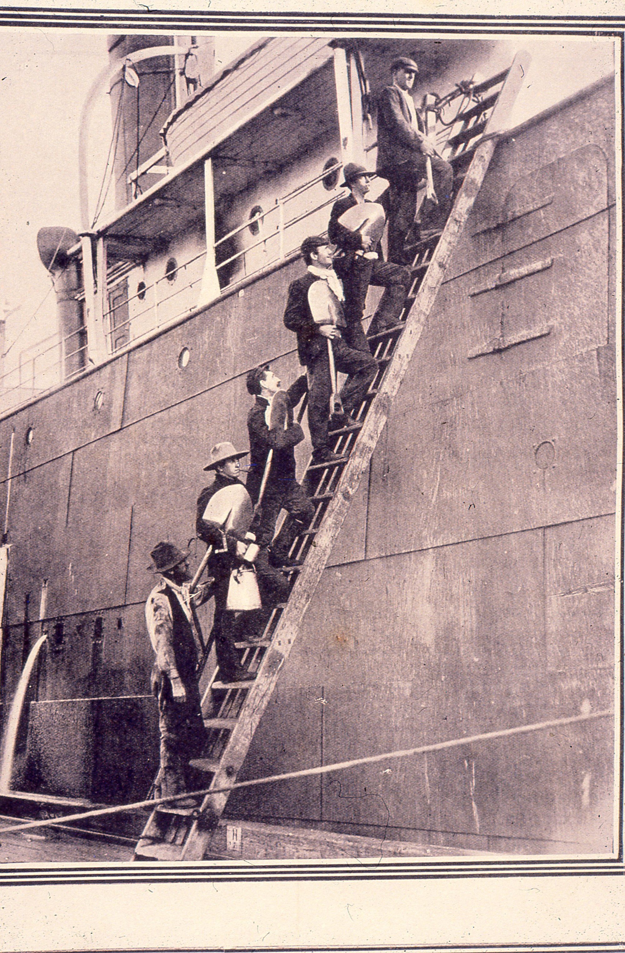 Newcastle workmen boarding ship, [NSW], 21 October, 1907 (21st October 1907), [C917-0509]. Living Histories, accessed 17/04/2026, https://livinghistories.newcastle.edu.au/nodes/view/11276