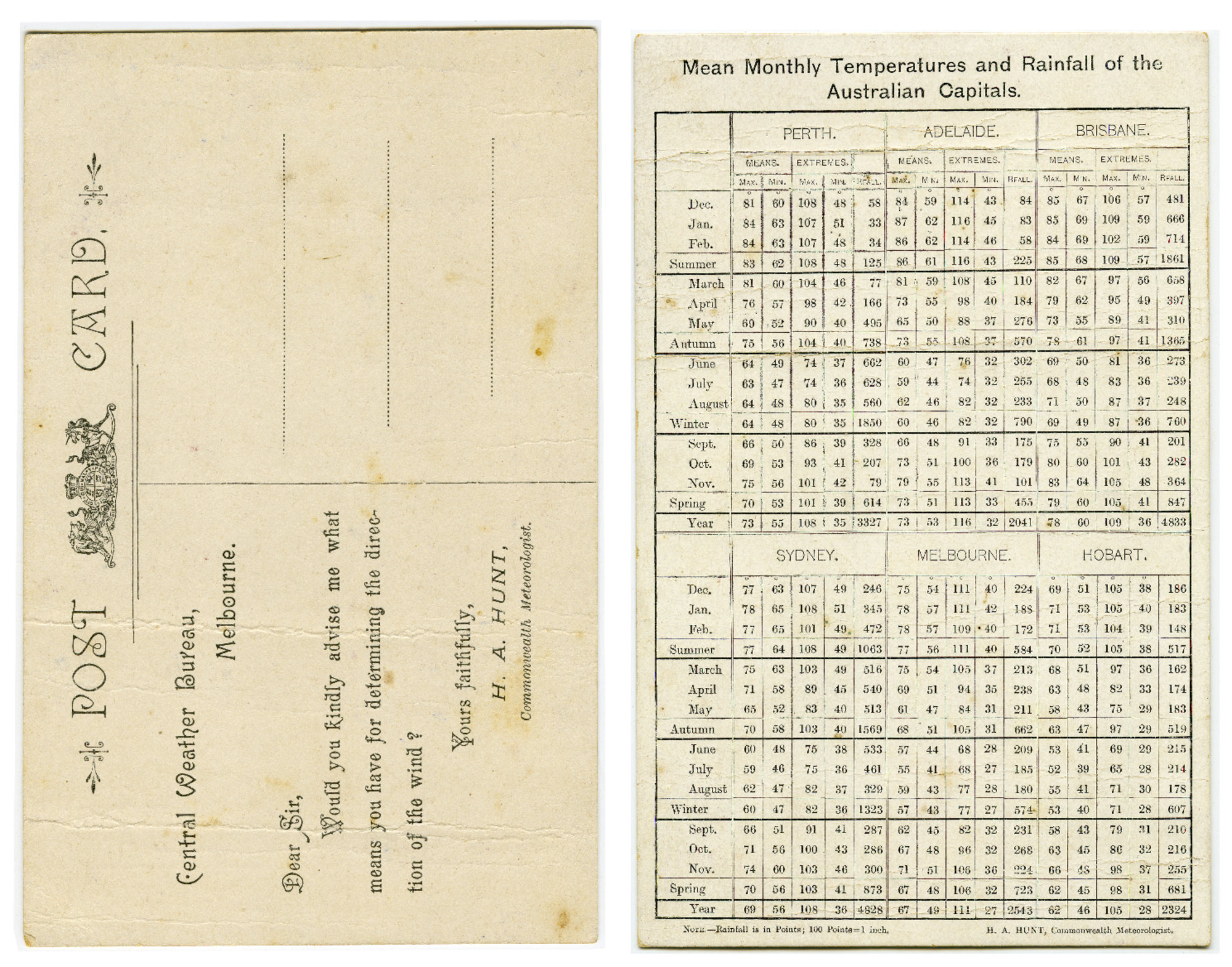 H. A. Hunt, H. N. Warren, B. W. Newman, L. J Dwyer, A. G. Wyndham, M Wyndham, Correspondence with the Government Weather Bureau, 1907-1954 (Between 1st October 1907 and 1st November 1954), [Box 1 Item 7]. Living Histories, accessed 04/04/2026, https://livinghistories.newcastle.edu.au/nodes/view/112763