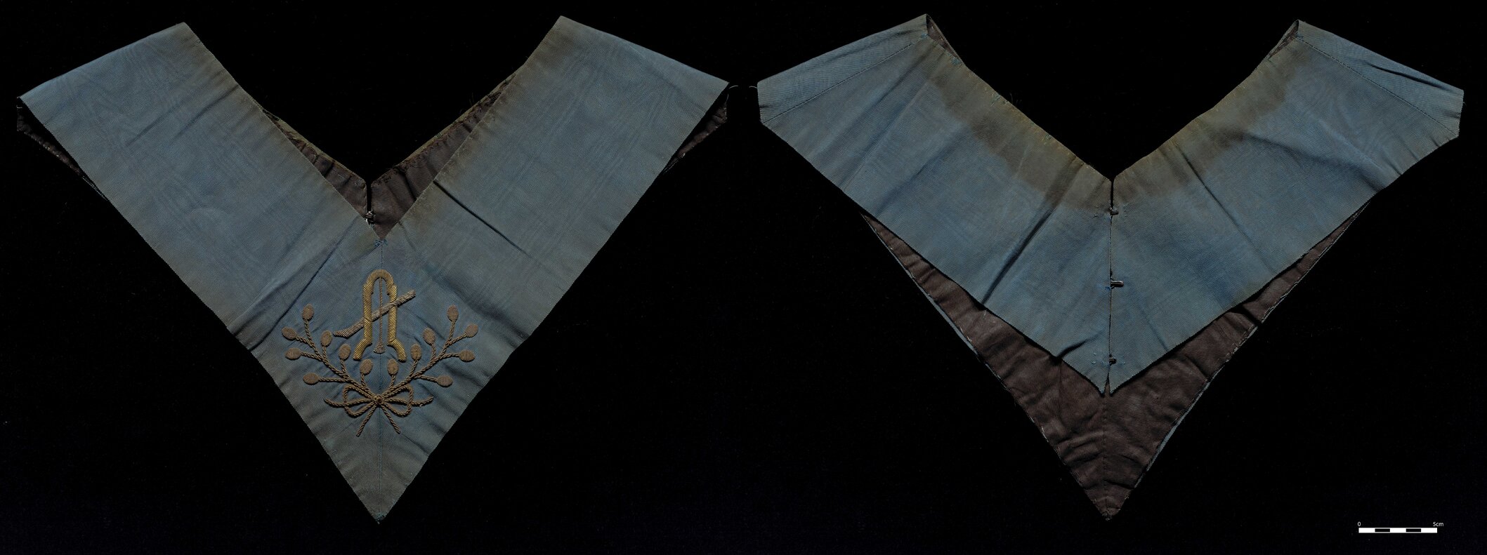 Masonic collar with gold symbols - plumb, level and chisel [Order of the Eastern Star], [BJFSM0612]. Living Histories, accessed 04/04/2026, https://livinghistories.newcastle.edu.au/nodes/view/112886