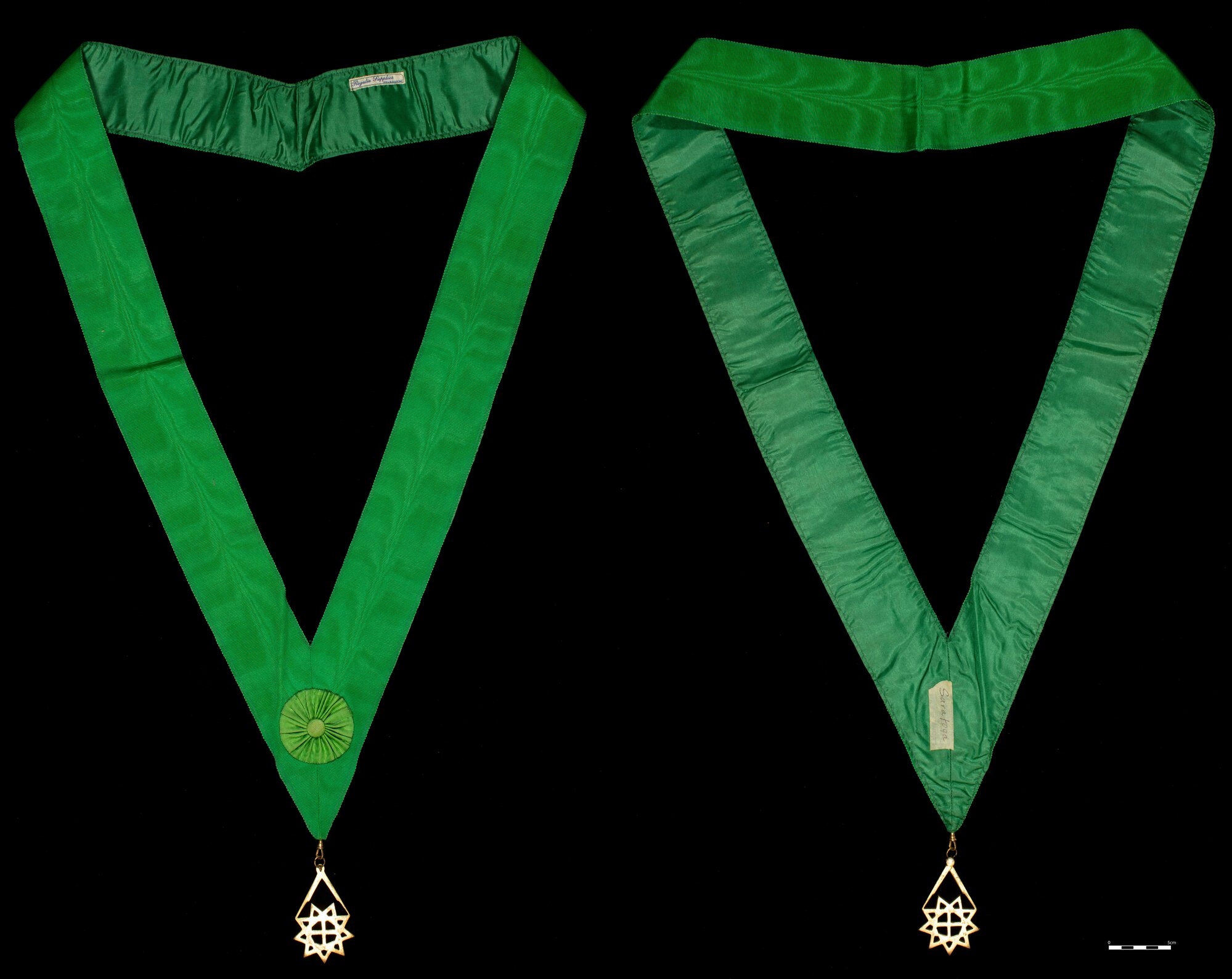 Collar, [Order of the Eastern Star], with green rosette and 9 pointed star