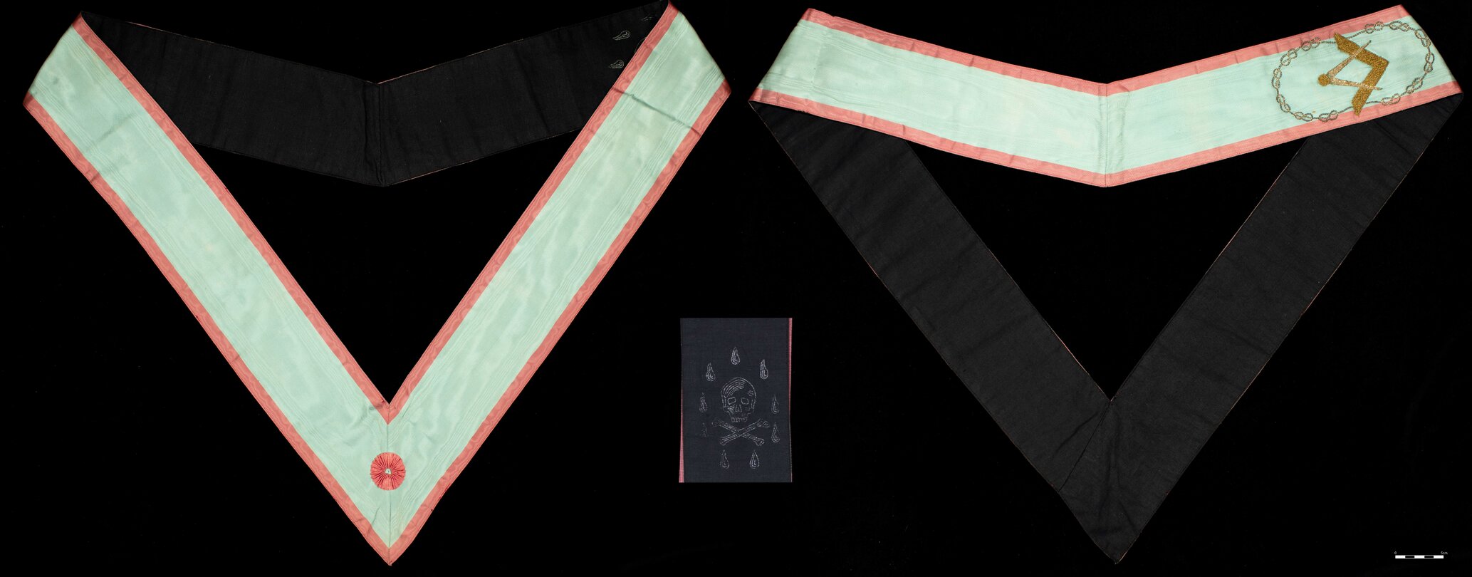 Collar, [Order of the Eastern Star], blue with red detail, skull and crossbones
