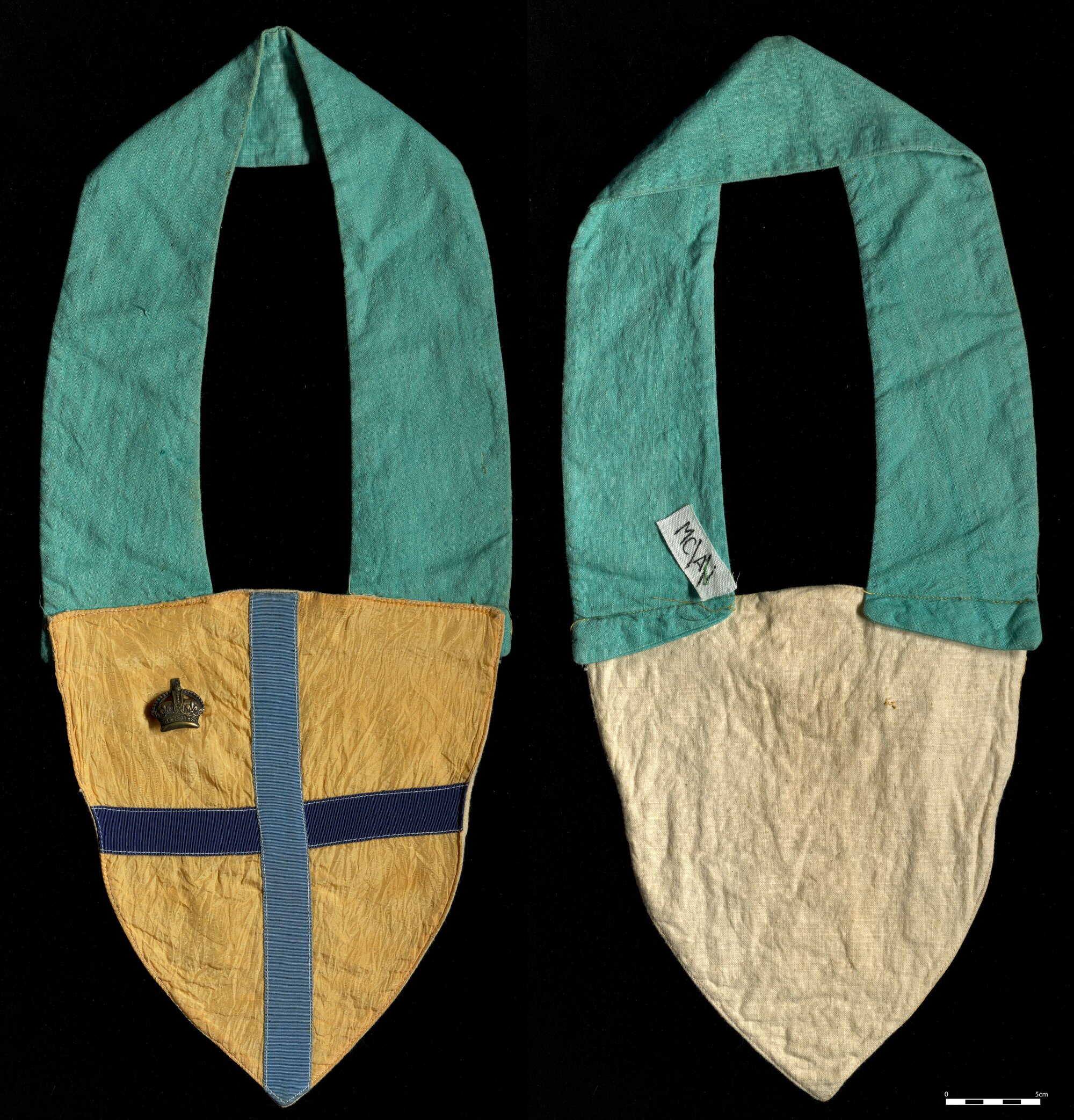 Collar, yellow shield shape panel, with crown, [BJFSM1032]. Living Histories, accessed 04/04/2026, https://livinghistories.newcastle.edu.au/nodes/view/113280