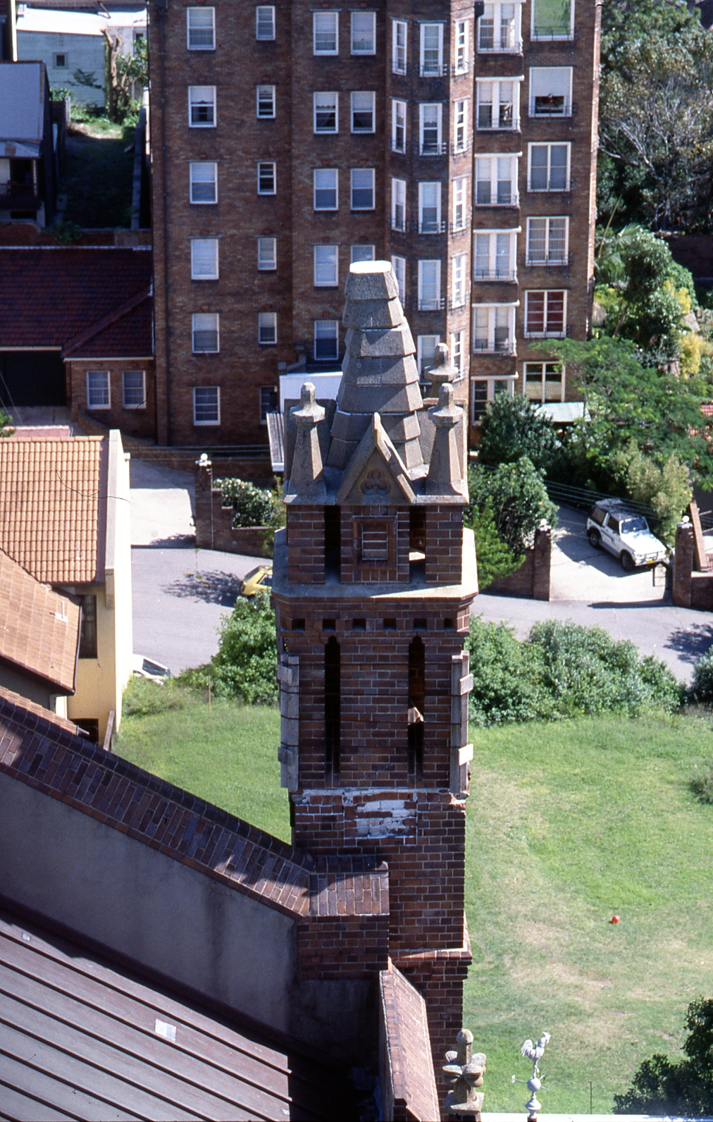 Medical Communication Unit, Tower, architectural detail on Christchurch Cathedral, Newcastle, NSW, [MCU-Newcastle-0058]. Living Histories, accessed 17/04/2026, https://livinghistories.newcastle.edu.au/nodes/view/11353