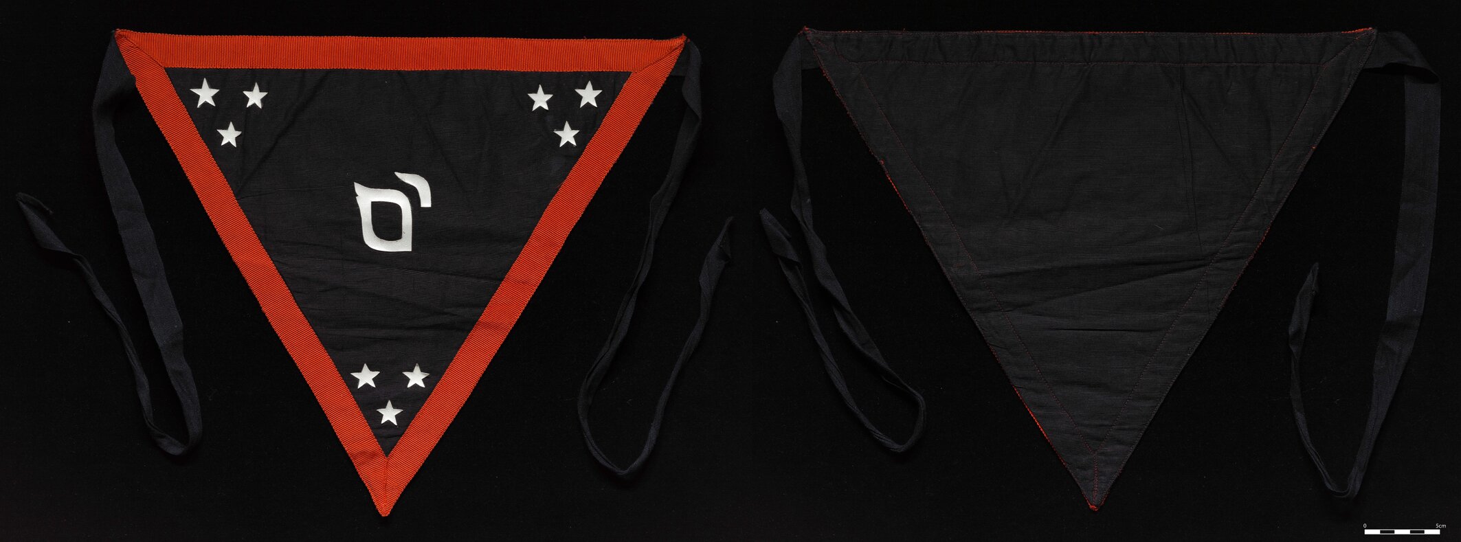 Masters working apron, triangular black with red edge, Gordon Row, [BJFSM1197]. Living Histories, accessed 04/04/2026, https://livinghistories.newcastle.edu.au/nodes/view/113955