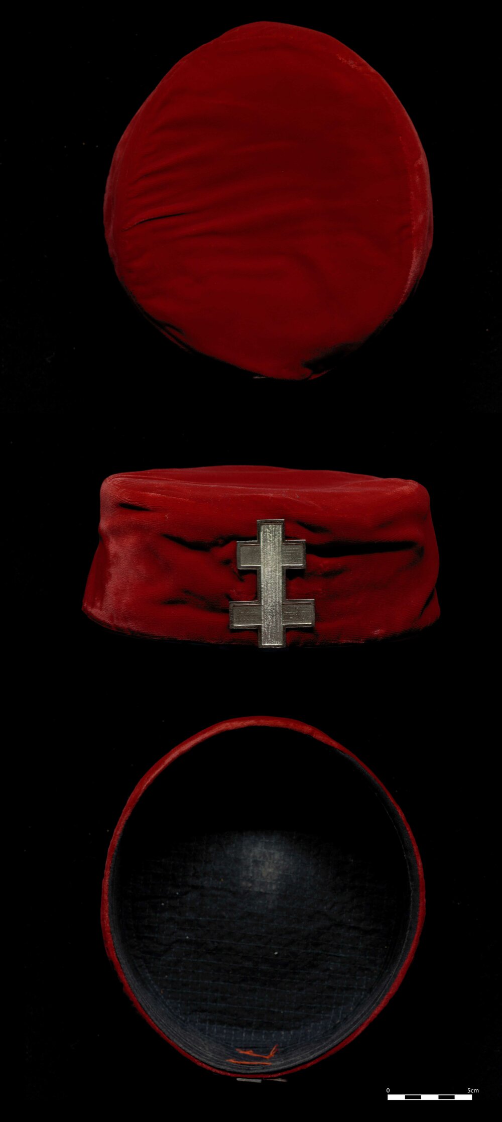 Knights templar, red perceptor cap, [BJFSM1204]. Living Histories, accessed 04/04/2026, https://livinghistories.newcastle.edu.au/nodes/view/113968