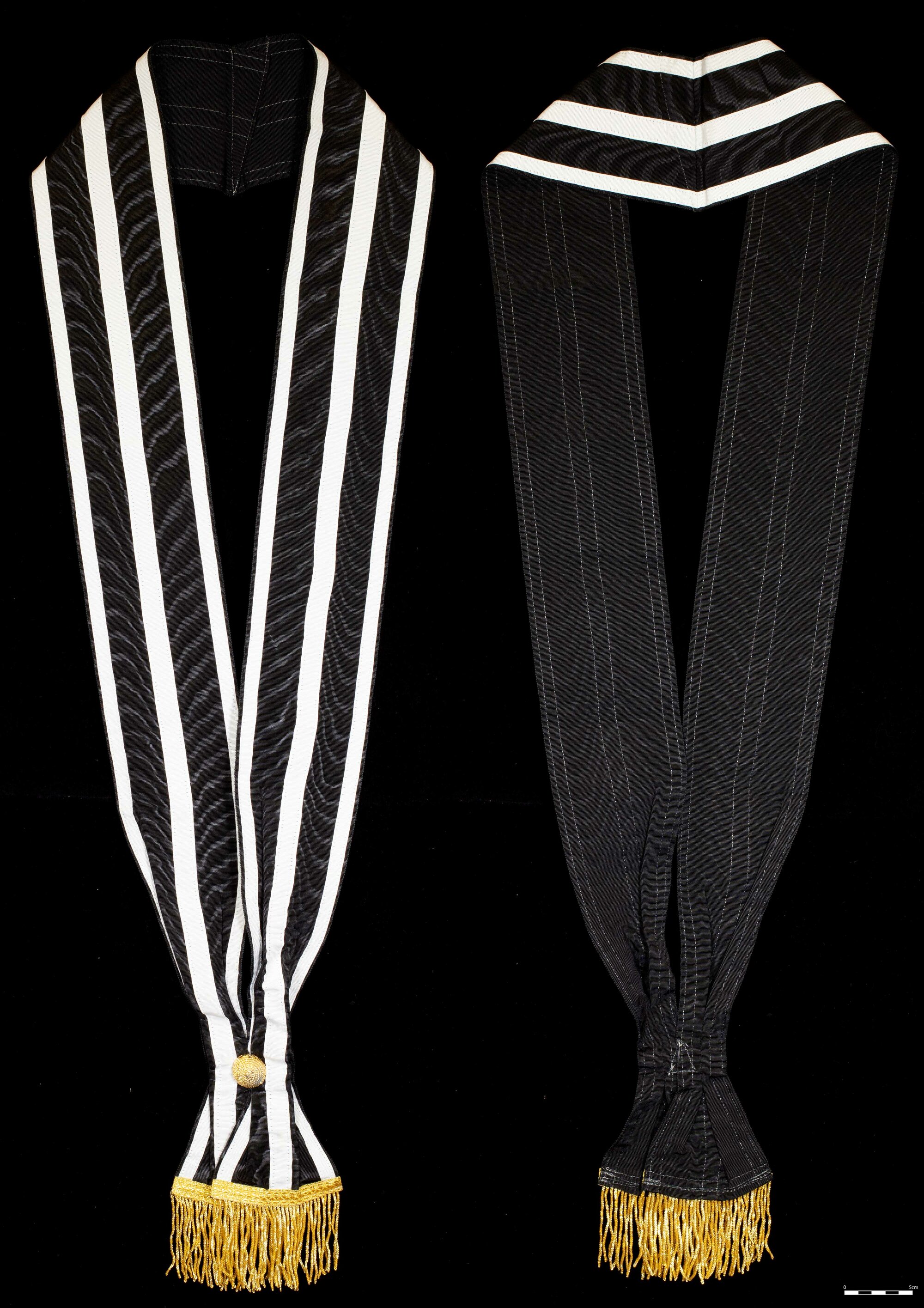 Masonic sash, [Knights Templar], black and white stripes, [BJFSM1212]. Living Histories, accessed 04/04/2026, https://livinghistories.newcastle.edu.au/nodes/view/113981