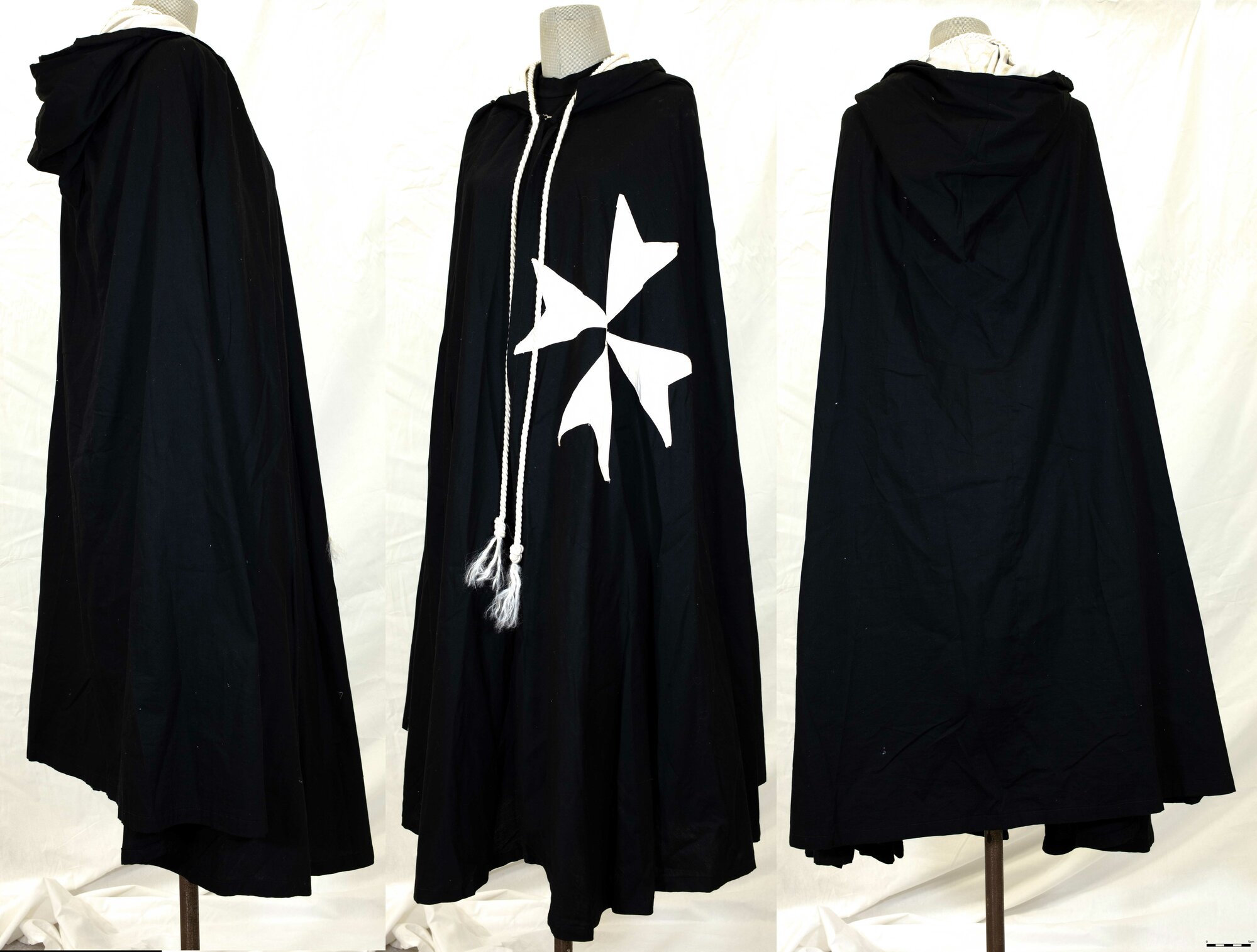 Knights of Malta cloak, black with 8 pointed Maltese cross