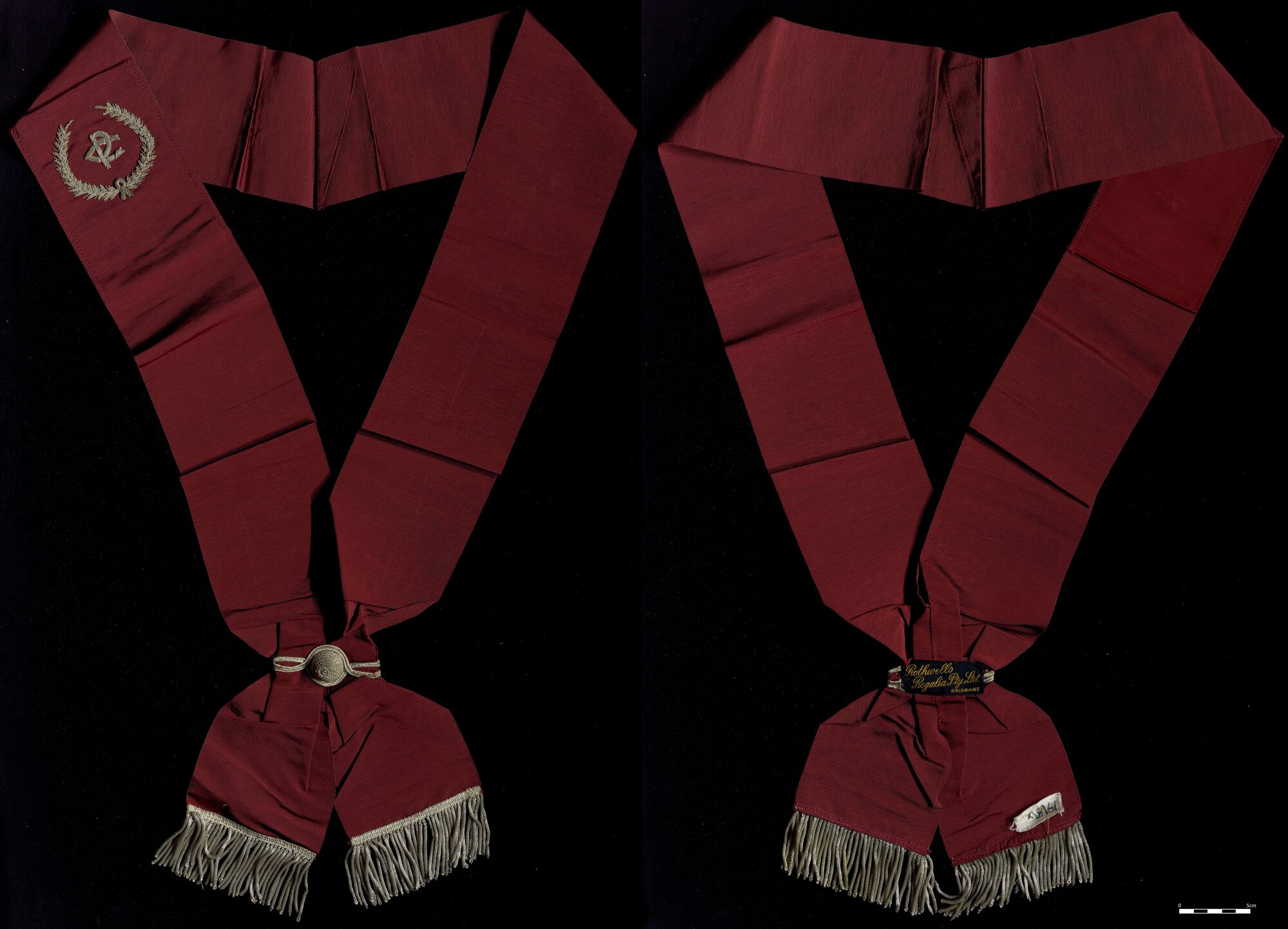 Rothwell's Regalia Pty. Ltd. Brisbane, Sash, Royal Antediluvian Order of Buffaloes, C.P., [BJFSM1124]. Living Histories, accessed 01/05/2026, https://livinghistories.newcastle.edu.au/nodes/view/114018