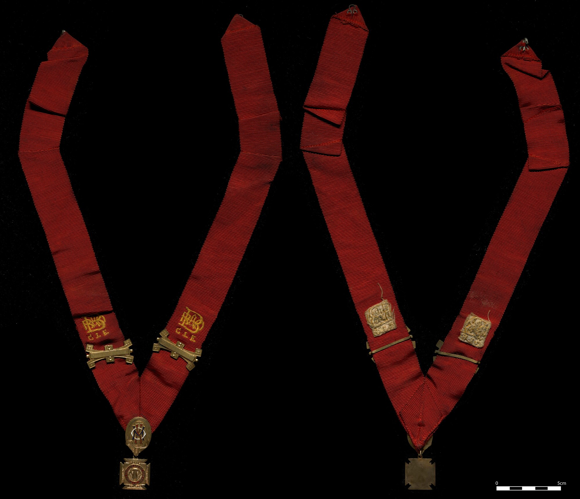 Red collarette, Royal Antediluvian Order of Buffaloes, G L E, [BJFSM1127]. Living Histories, accessed 01/05/2026, https://livinghistories.newcastle.edu.au/nodes/view/114020