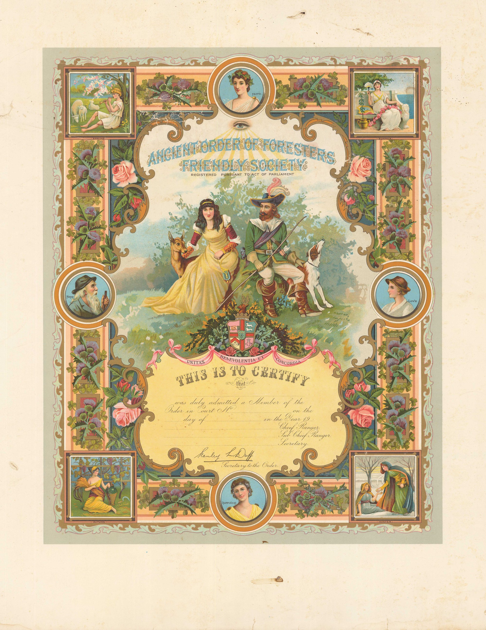 Certificate, Blank, Members, Ancient Order of Foresters Friendly Society