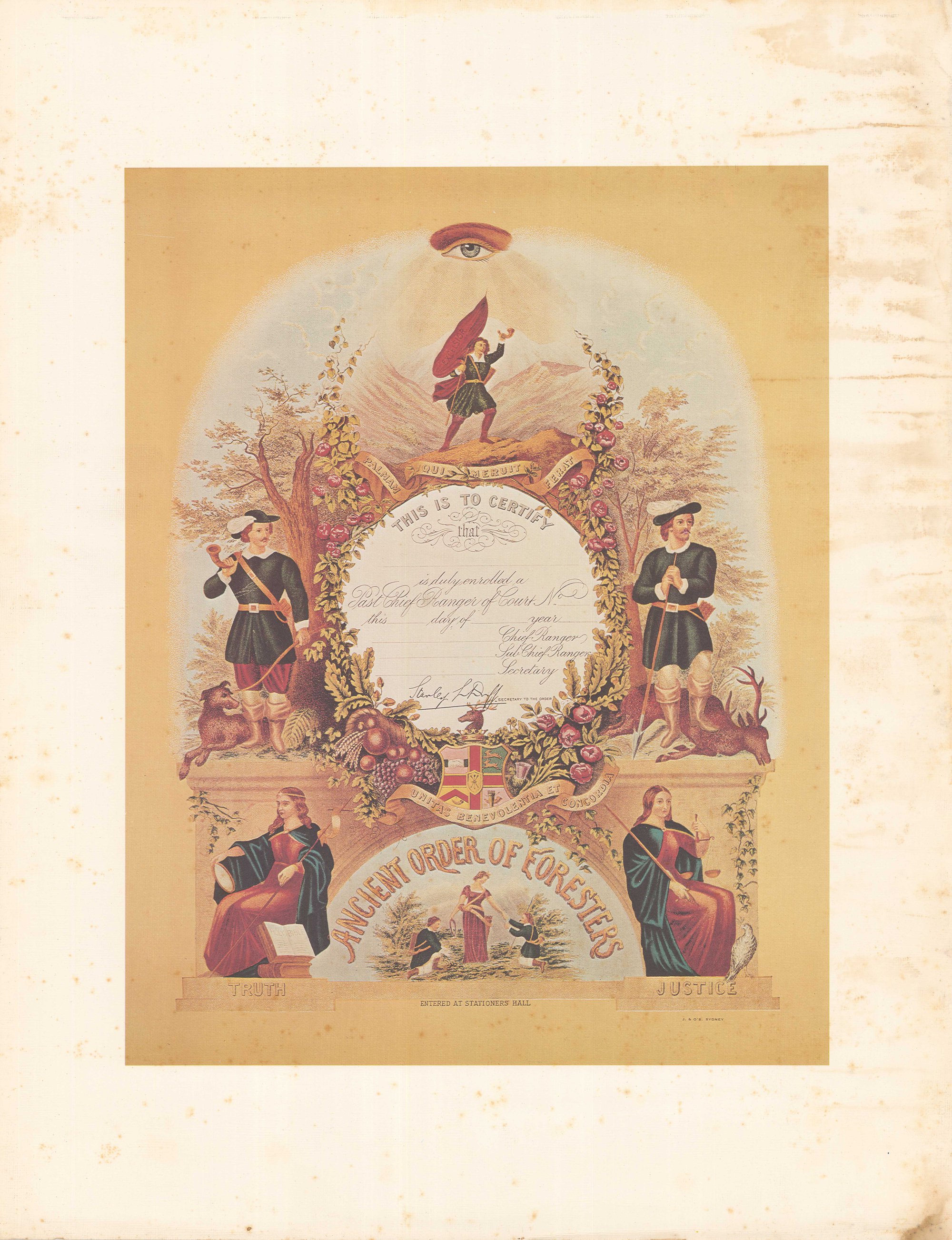 Certificate, blank, Past Chief Ranger of Court, Ancient Order of Foresters