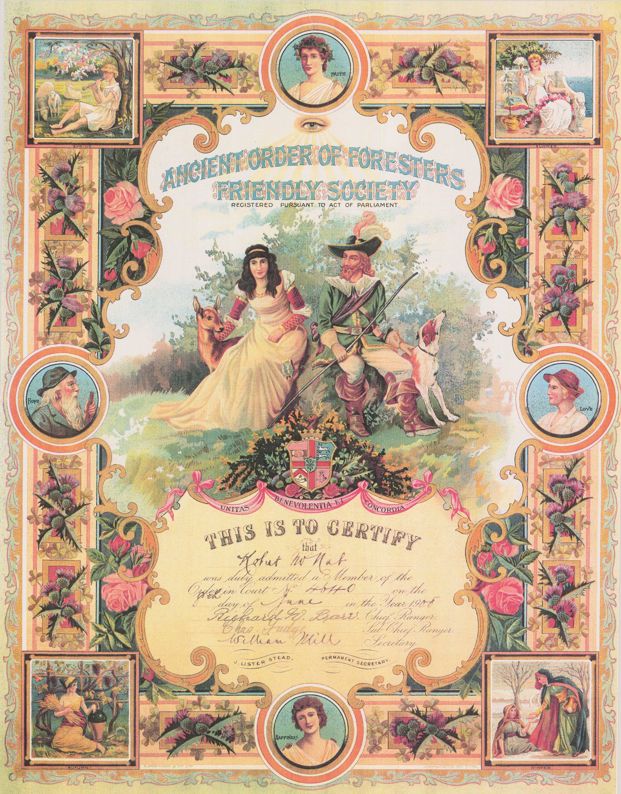 Certificate, Ancient Order of Foresters, 1908 (6th August 1900), [BJFSM0078]. Living Histories, accessed 04/04/2026, https://livinghistories.newcastle.edu.au/nodes/view/114141
