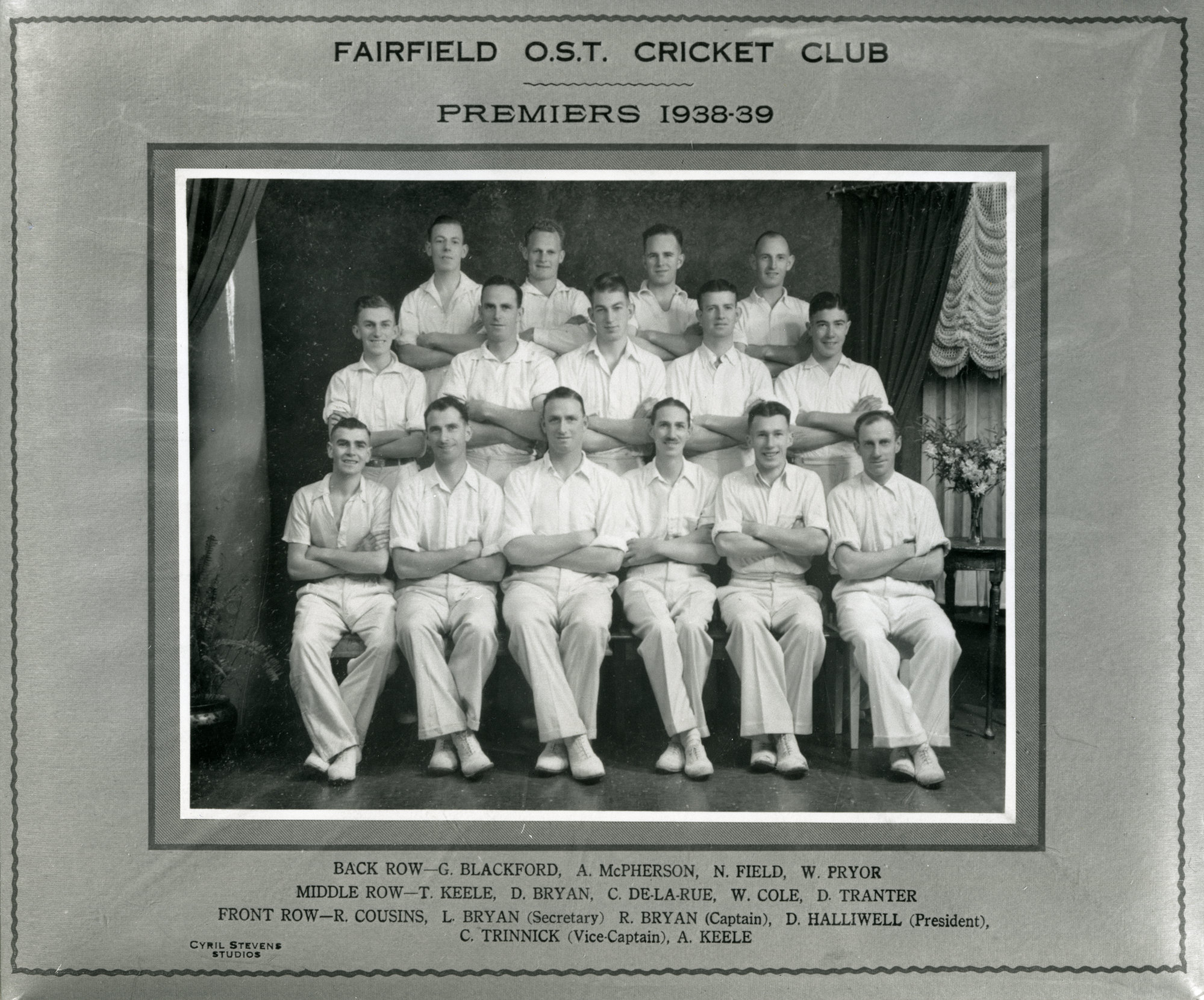 Order of the Sons of Temperance, Fairfield Cricket Club Premiers, 1938-39