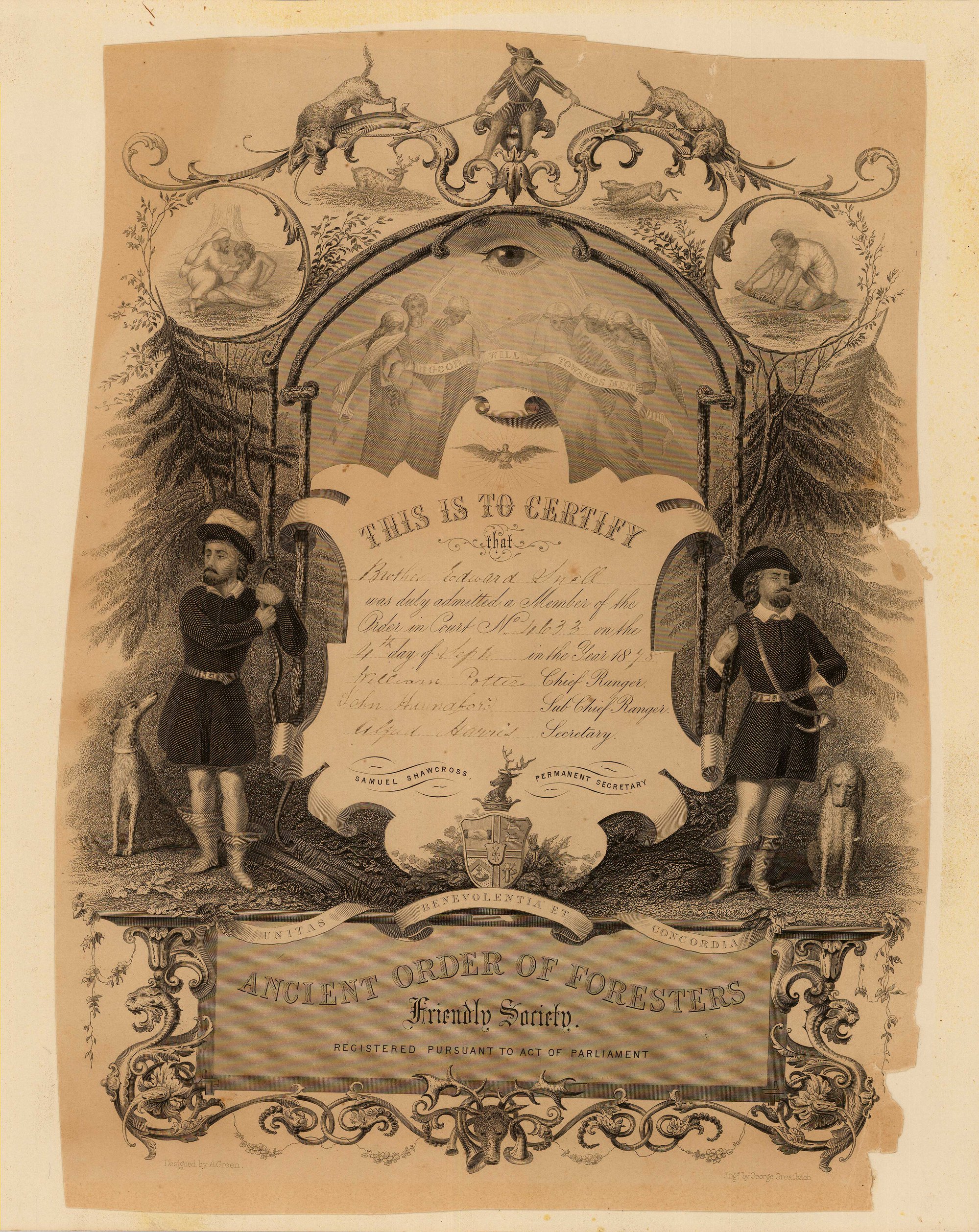 Certificate, Edward Snell, Ancient Order of Foresters Friendly Society, 1878