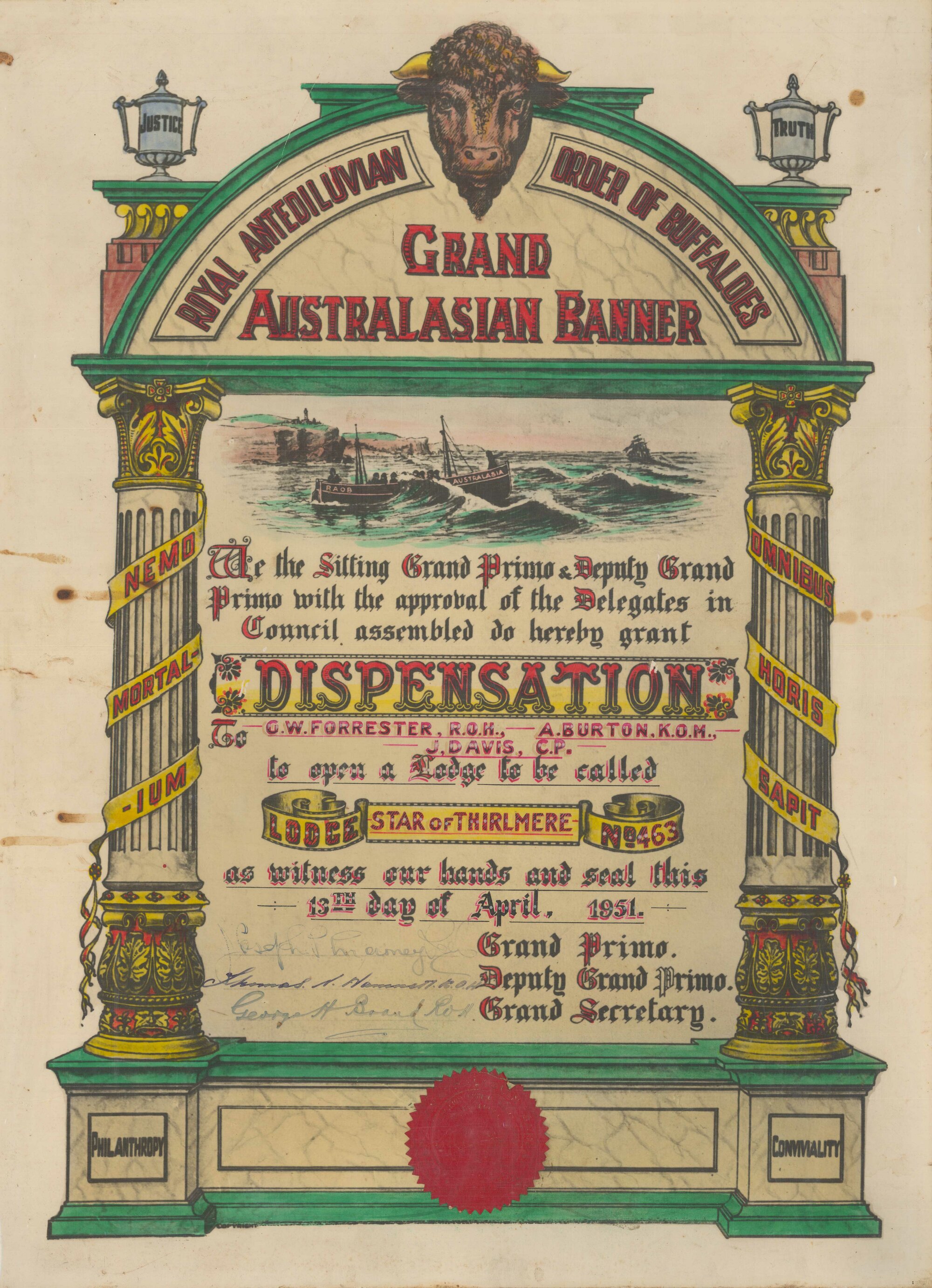 Dispensation for the Star of Thirlmere Lodge No. 463, R.A.O.B., 1951 (13th April 1951), [BJFSM0311]. Living Histories, accessed 01/05/2026, https://livinghistories.newcastle.edu.au/nodes/view/114375