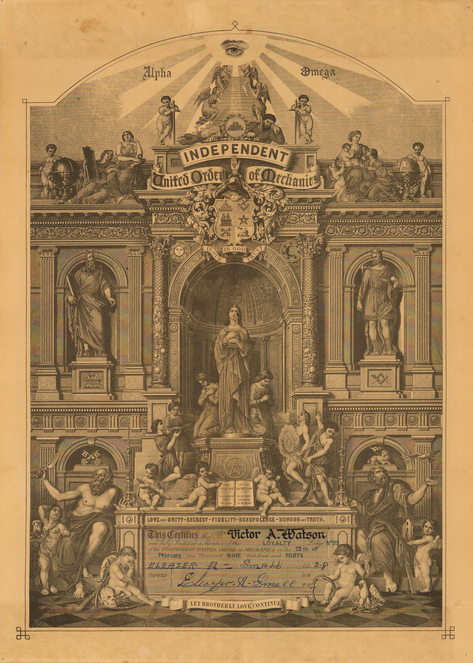 Certificate, Victor Watson, Independent United Order of Mechanics, 1940