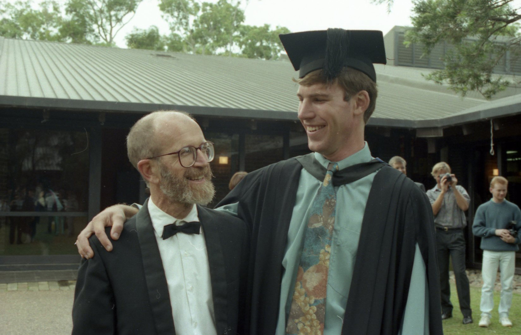 Dr. Bob Berghout with his son, Brendan Berghout who received his Bachelor of Engineering Degree in Civil Engineering from the University of Newcastle, Australia - 1992 (1992), [B16368-92.136.14]. Living Histories, accessed 18/03/2026, https://livinghistories.newcastle.edu.au/nodes/view/11564