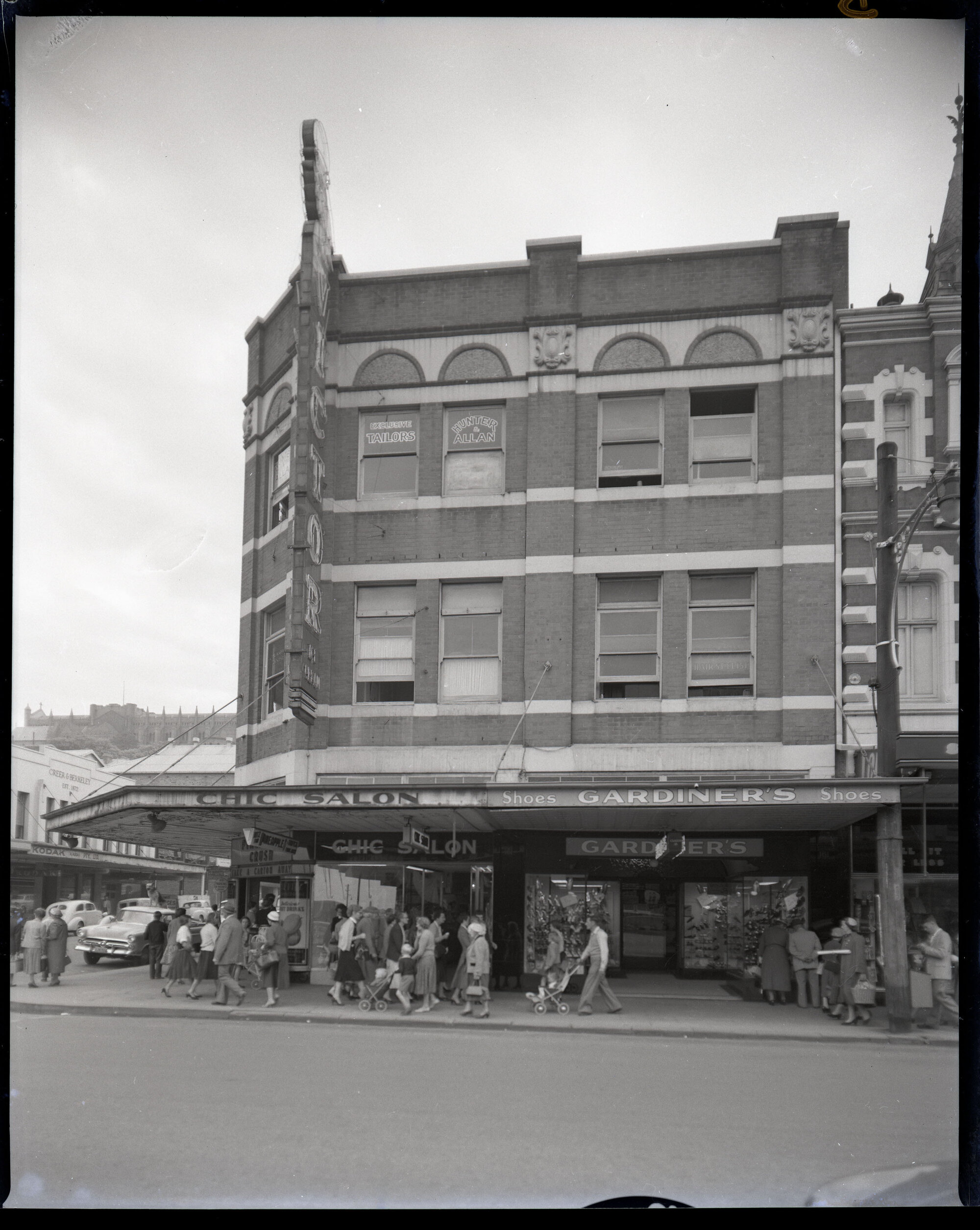 Green Leaves Studio (1955-1963), Shops at the corner Hunter and Wolfe Streets, Newcastle, NSW, 1957 (9th September 1957), [AHAN00275]. Living Histories, accessed 29/03/2026, https://livinghistories.newcastle.edu.au/nodes/view/116198