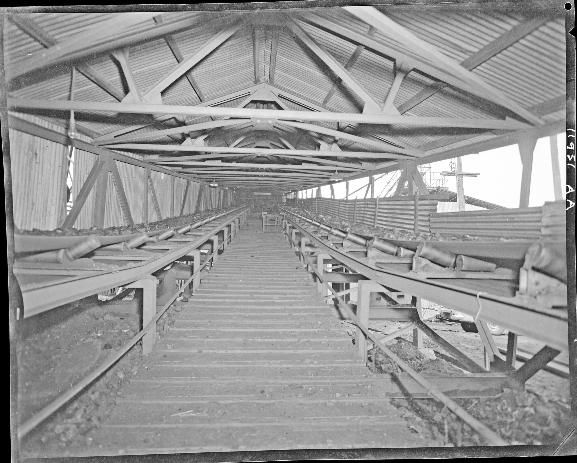 Hannan Photographics (1958-2011), Two conveyor belts at mine site, NSW, 1958 (15th August 1958), [AHAN00312]. Living Histories, accessed 07/02/2026, https://livinghistories.newcastle.edu.au/nodes/view/116233
