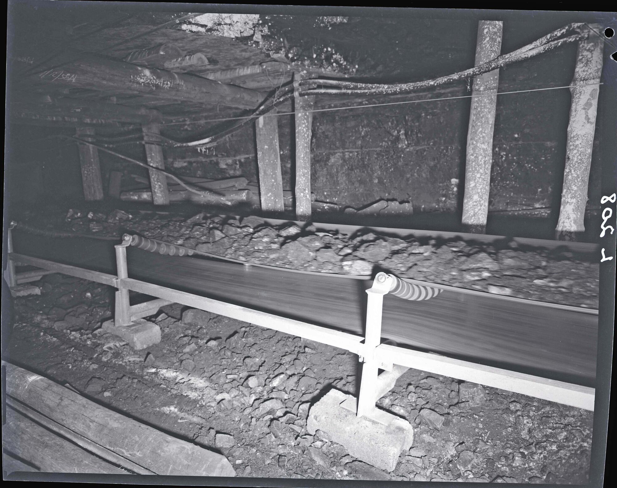 Hannan Photographics (1958-2011), Coal being carried along conveyor belt, [Coalcliff Colliery], NSW, 1959 (28th April 1959), [AHAN00410]. Living Histories, accessed 29/03/2026, https://livinghistories.newcastle.edu.au/nodes/view/116334