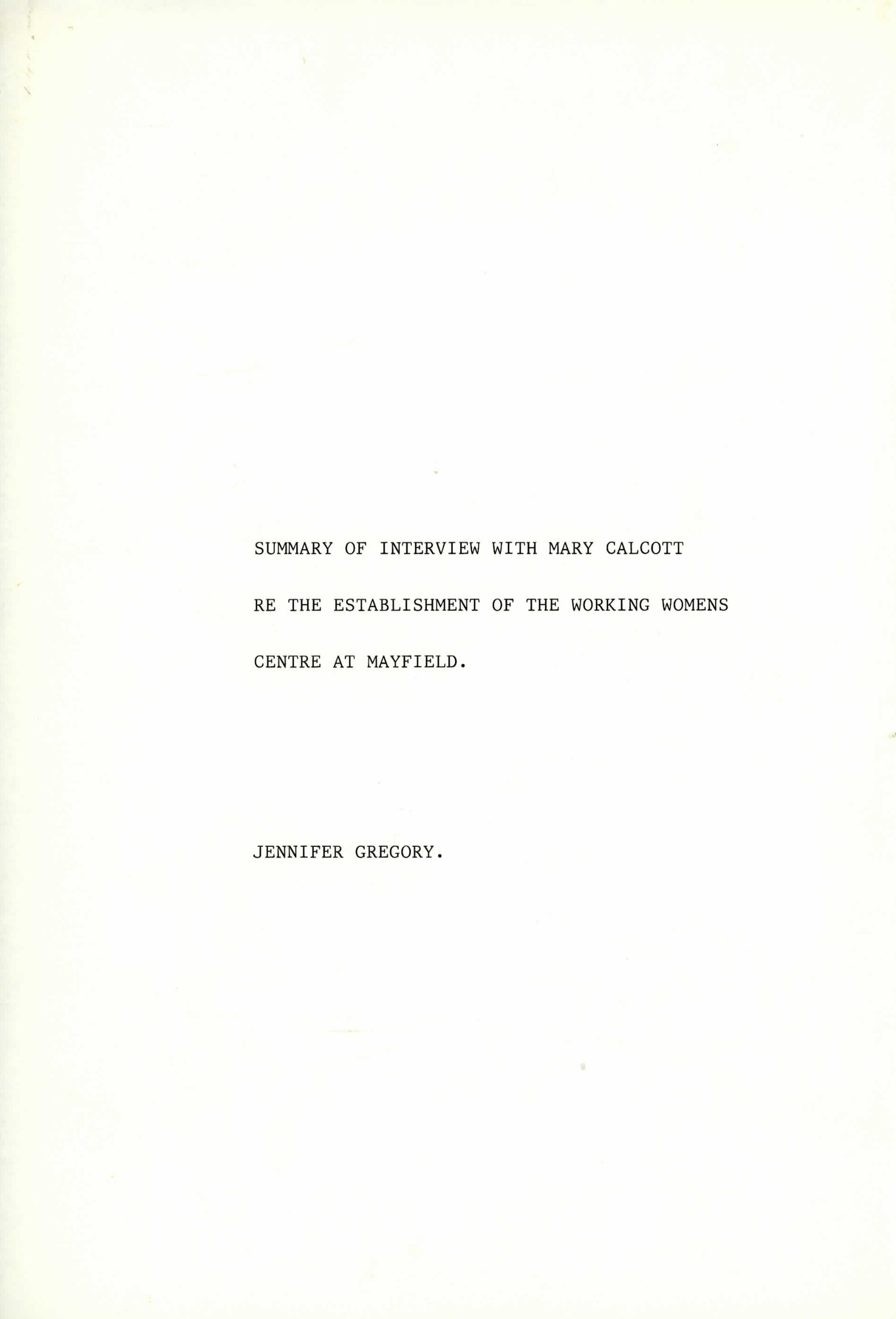 Interview Summary: Mary Calcott on the Establishment of Working Women’s Centre at Mayfield, NSW, 28 October 1987
