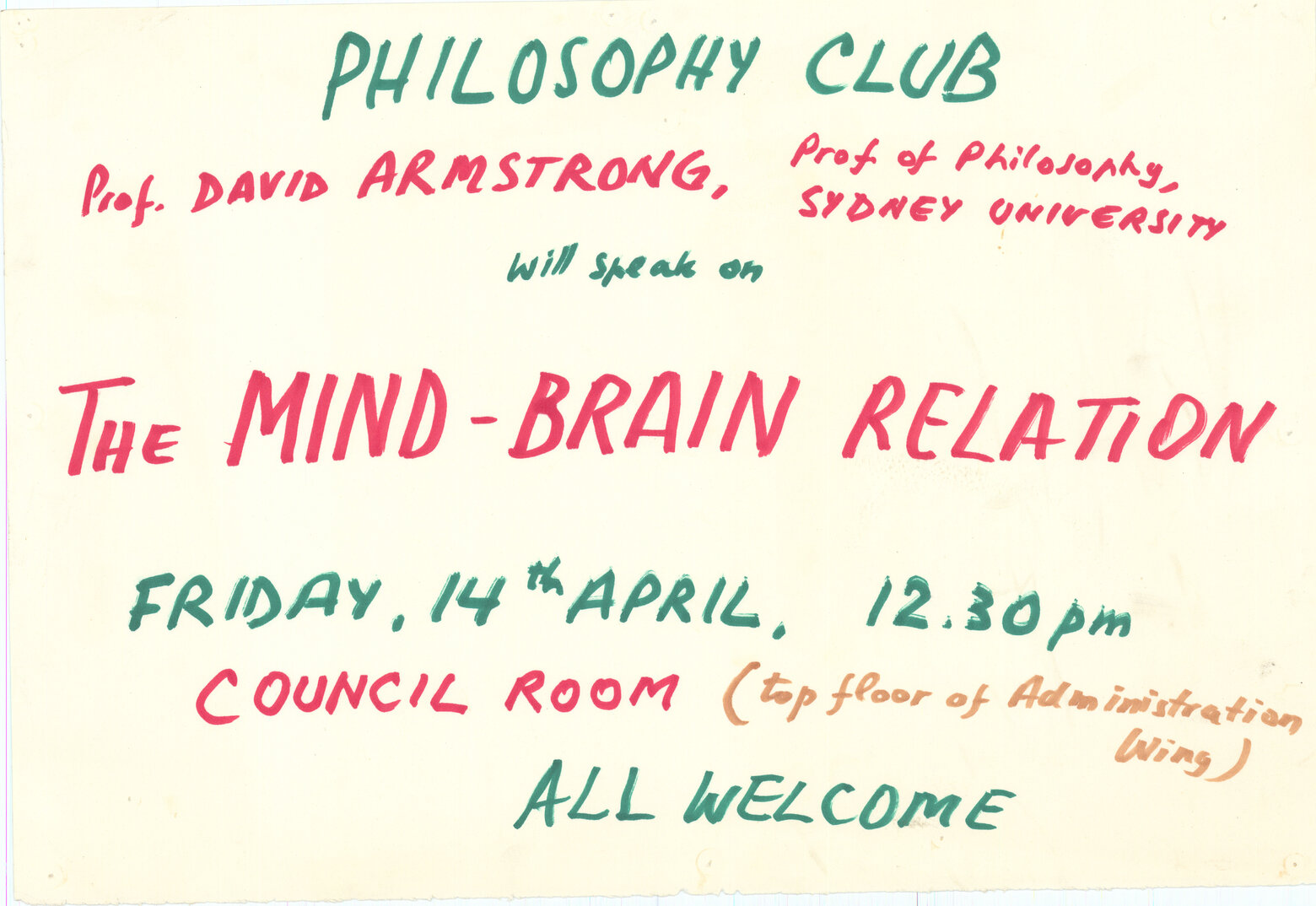 Poster, Philosphy Club camp, Morpeth Conference Centre (12 May - 14 May), [University-Posters-0096-Philosophy-Club-Camp]. Living Histories, accessed 15/04/2026, https://livinghistories.newcastle.edu.au/nodes/view/116918