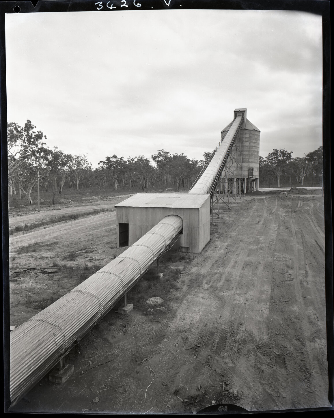 Hannan Photographics (1958-2011), One large conveyor belt within two buildings, 1963 (2nd October 1963), [AHAN00619]. Living Histories, accessed 05/04/2026, https://livinghistories.newcastle.edu.au/nodes/view/117101