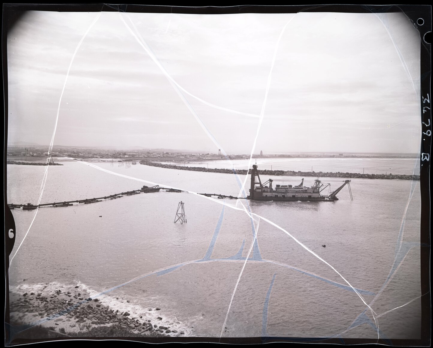Hannan Photographics (1958-2011), Dredging spoil gushing from pipe at Stockton, Newcastle Harbour, 1963 (28th October 1963), [AHAN00851]. Living Histories, accessed 29/03/2026, https://livinghistories.newcastle.edu.au/nodes/view/117354