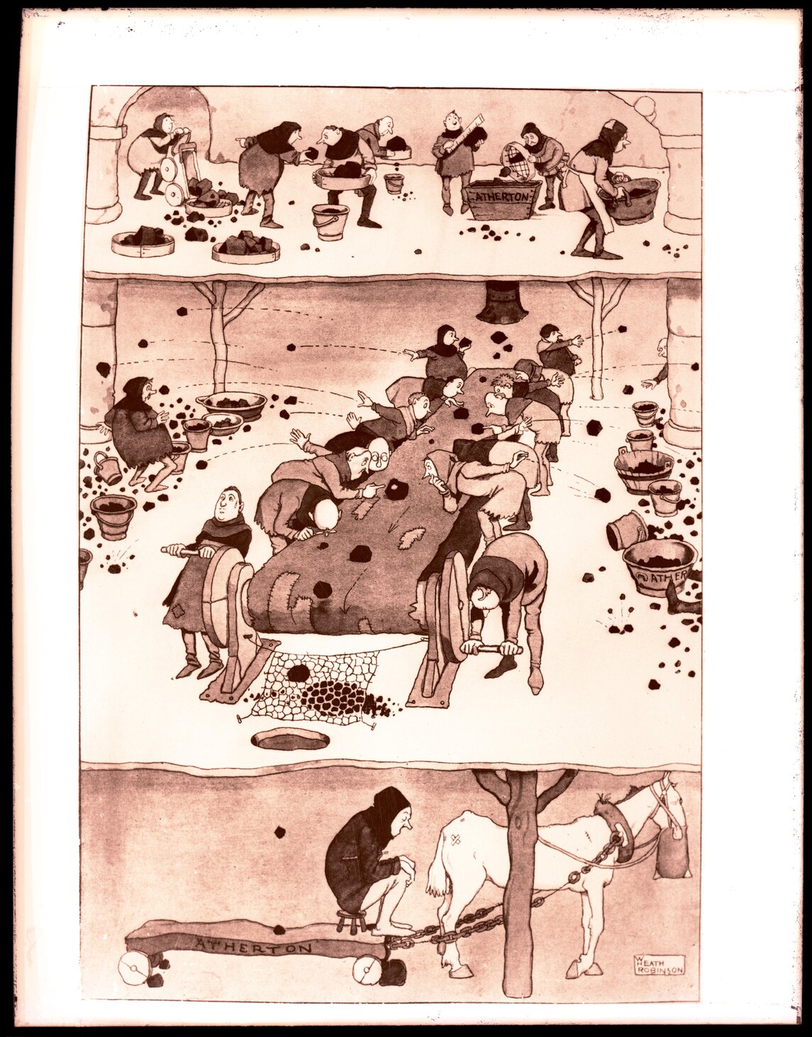 Illustration by W. Heath Robinson, 'Atherton', with conveyor belt