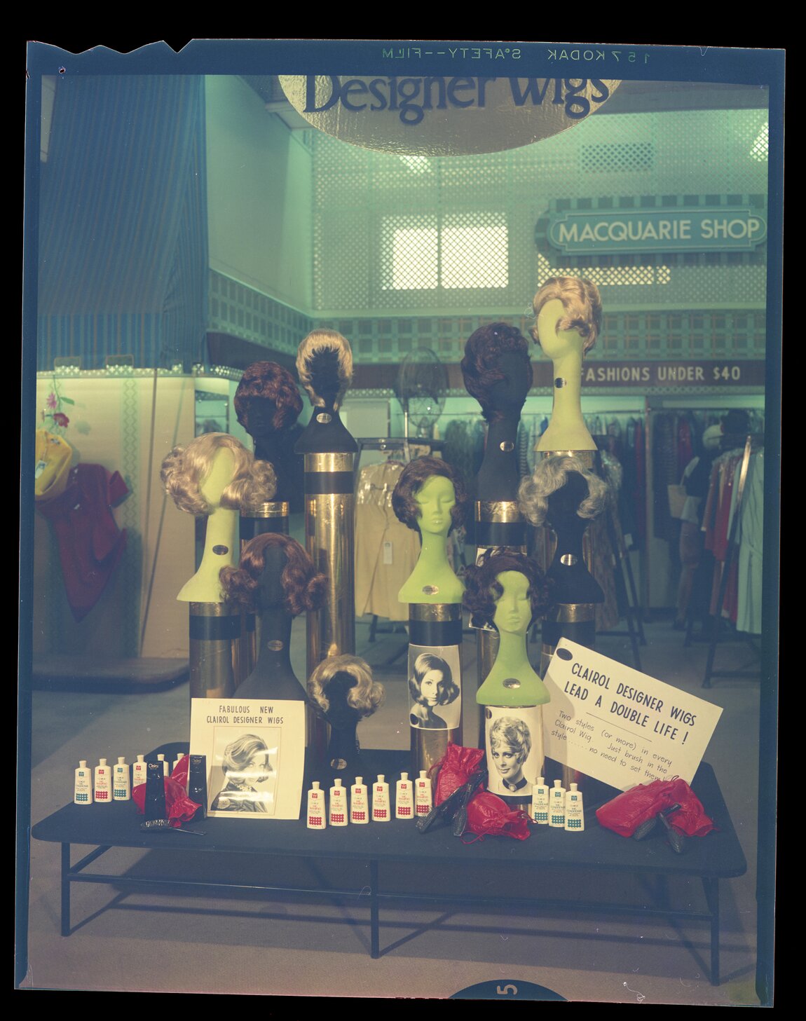 Hannan Photographer, Clairol designer wigs display, Maquarie Shop, [AHAN00996]. Living Histories, accessed 07/02/2026, https://livinghistories.newcastle.edu.au/nodes/view/117499
