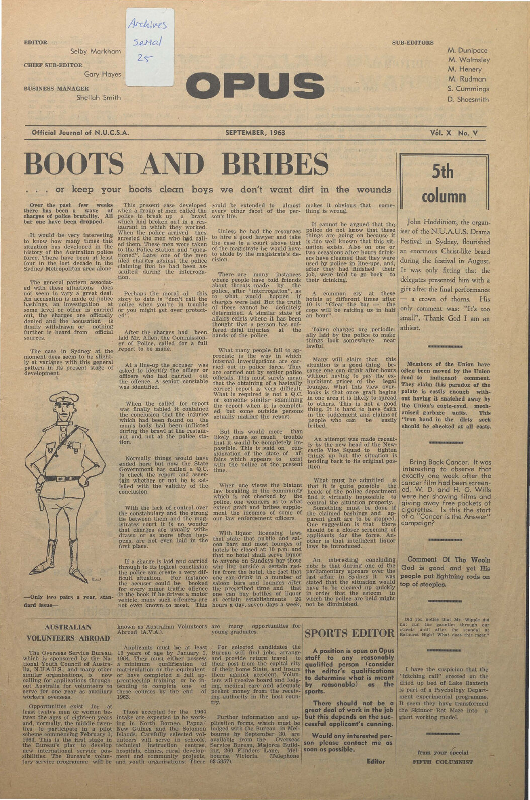 Newcastle University College Students' Association, OPUS Official Journal of N.U.C.S.A. September 1963. (September 1963), [Archives Serial 25]. Living Histories, accessed 24/01/2026, https://livinghistories.newcastle.edu.au/nodes/view/118184