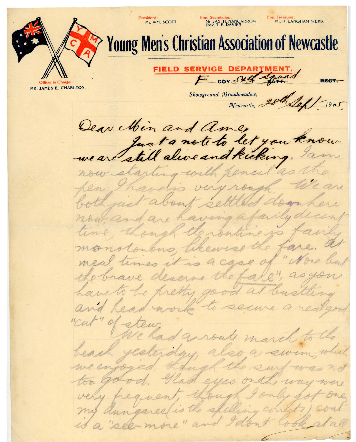 James "Dick" Long, Letter from James "Dick" Long to Mary "Min" and Amy "Ame" Long, 28 September 1915 (28th September 1915), [DL19150928]. Living Histories, accessed 19/03/2026, https://livinghistories.newcastle.edu.au/nodes/view/118592