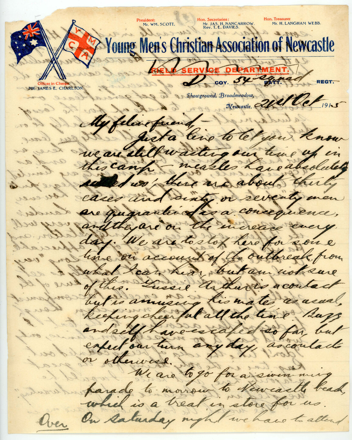 James "Dick" Long, Letter from James "Dick" Long to Mary "Min" and Amy "Ame" Long, 21 October 1915 (21st October 1915), [DL19151021]. Living Histories, accessed 08/03/2026, https://livinghistories.newcastle.edu.au/nodes/view/118593