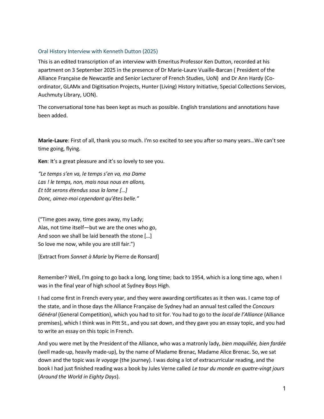 Kenneth Dutton, INTERVIEW : Emeritus Professor Kenneth (Ken) Dutton AM FRSN (2025). Living Histories, accessed 18/03/2026, https://livinghistories.newcastle.edu.au/nodes/view/119178