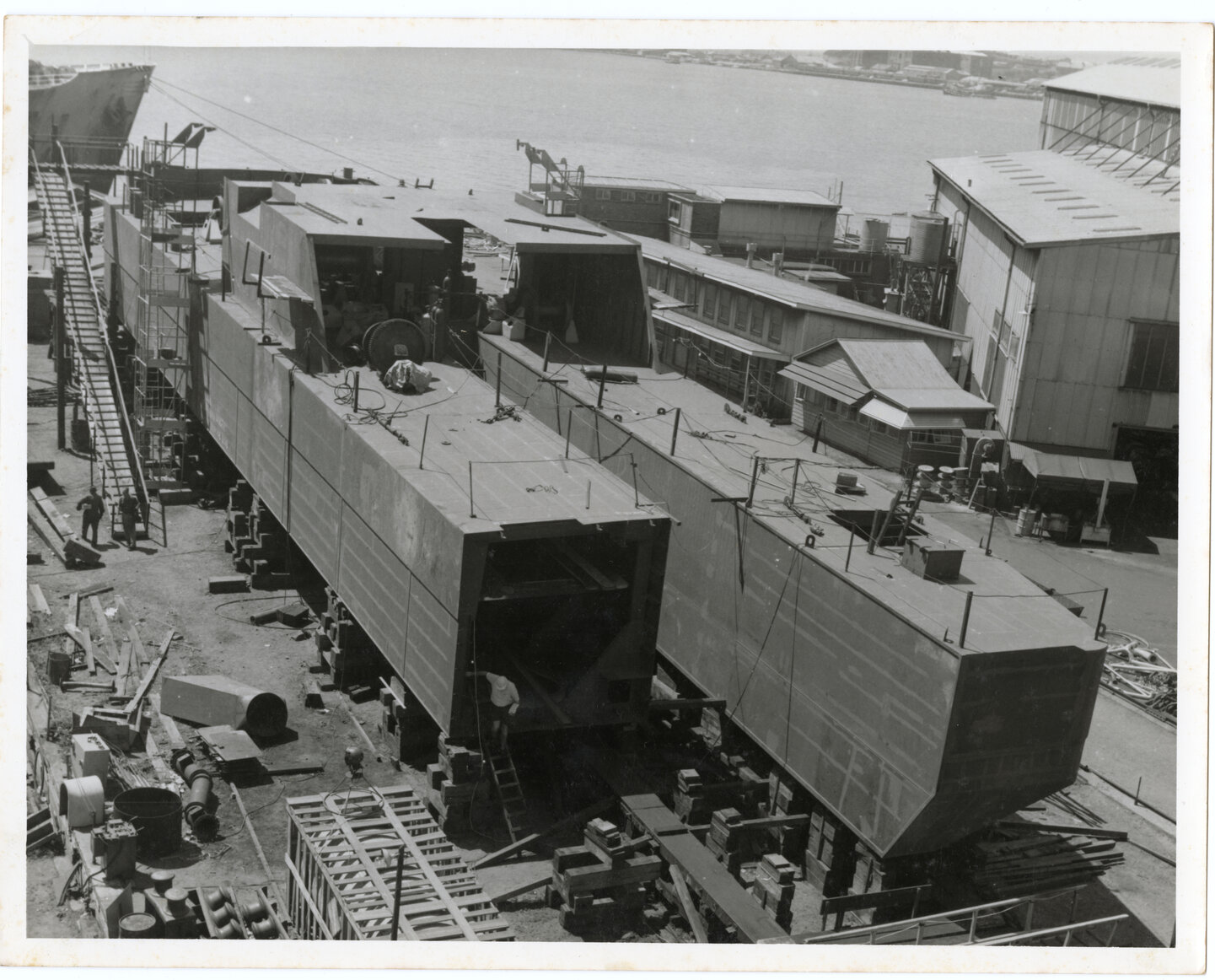 Newcastle State Dockyard, Bucket Dredge 'Victoria', Ship 81 built 1968 at State Dockyard (1968), [2006-002-21]. Living Histories, accessed 30/04/2026, https://livinghistories.newcastle.edu.au/nodes/view/119209