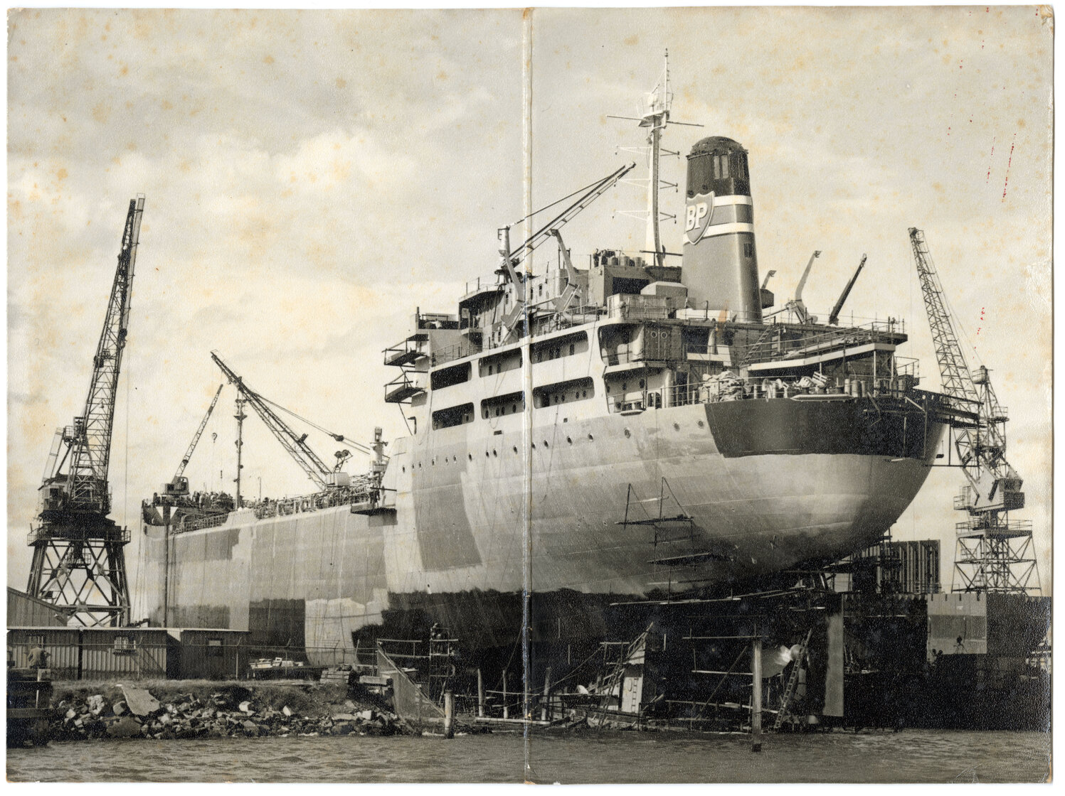 Newcastle State Dockyard, BP Enterprise under construction at State Dockyard, 1968 (1968), [2006-002-22]. Living Histories, accessed 18/03/2026, https://livinghistories.newcastle.edu.au/nodes/view/119210