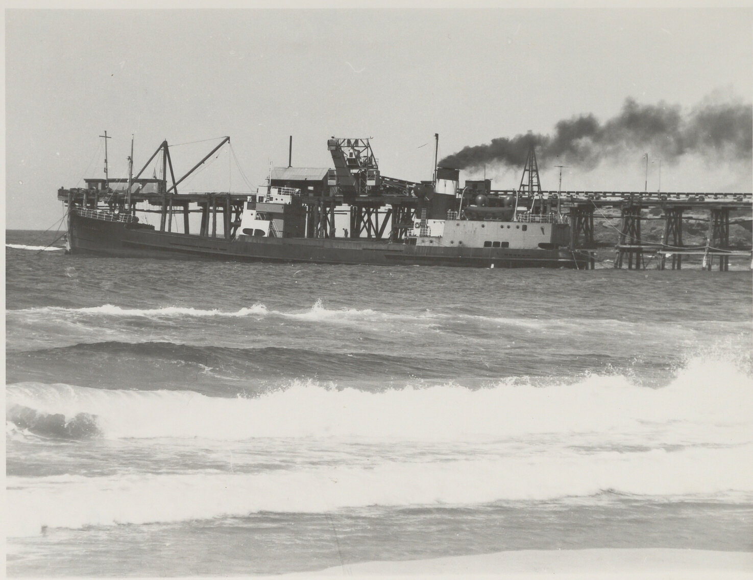 Bert Lovett Collection, Newcastle Maritime Museum, Sixty-Miler at Catherine Hill Bay Jetty, 15th October 1969 (15th October 1969), [000-015-067]. Living Histories, accessed 12/04/2026, https://livinghistories.newcastle.edu.au/nodes/view/119317