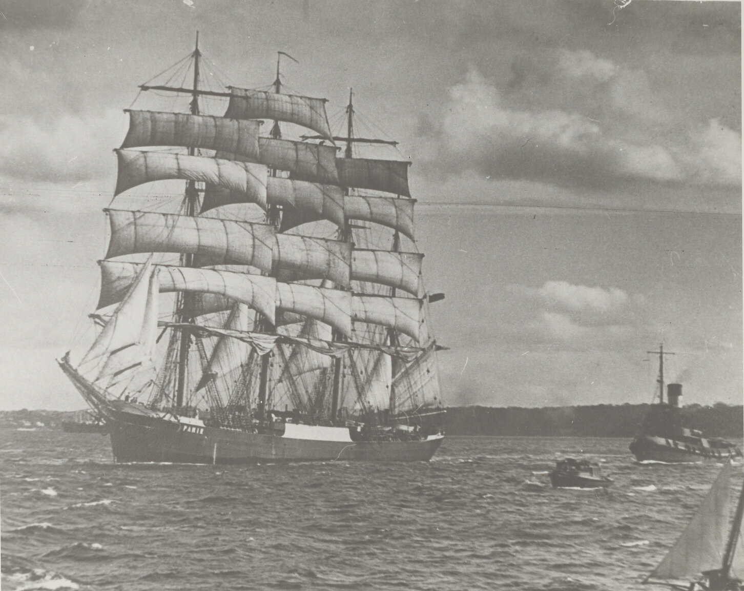 Bert Lovett Collection, Newcastle Maritime Museum, Sailship 'Pamir' off Sydney Harbour, 1947 (1947), [000-015-071]. Living Histories, accessed 12/04/2026, https://livinghistories.newcastle.edu.au/nodes/view/119321