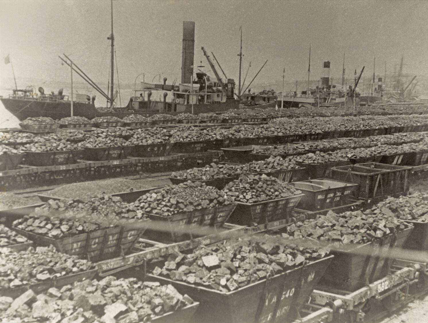 Bert Lovett Collection, Newcastle Maritime Museum, Coal loading on the Dyke, 1910. (1910), [000-013-001]. Living Histories, accessed 02/04/2026, https://livinghistories.newcastle.edu.au/nodes/view/119342