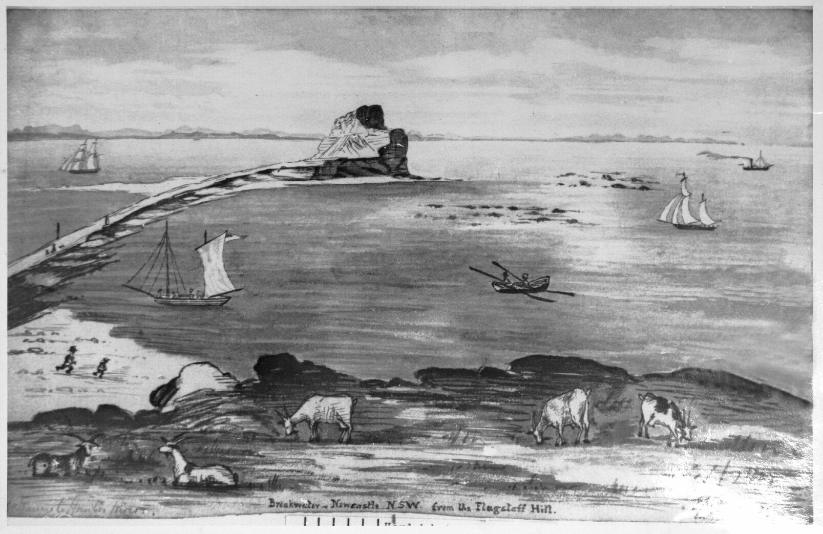 Bert Lovett Collection, Newcastle Maritime Museum, Painting - "Breakwater - Newcastle, N.S.W. from the Flagstaff Hill.", [000-013-006]. Living Histories, accessed 02/04/2026, https://livinghistories.newcastle.edu.au/nodes/view/119347
