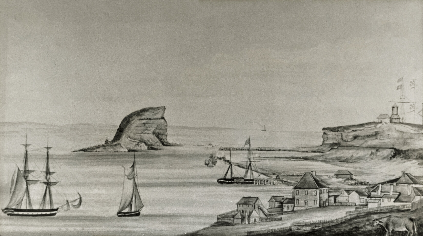 Bert Lovett Collection, Newcastle Maritime Museum, Painting of Nobbys Head and Flagstaff Hill, [000-013-008]. Living Histories, accessed 02/04/2026, https://livinghistories.newcastle.edu.au/nodes/view/119350