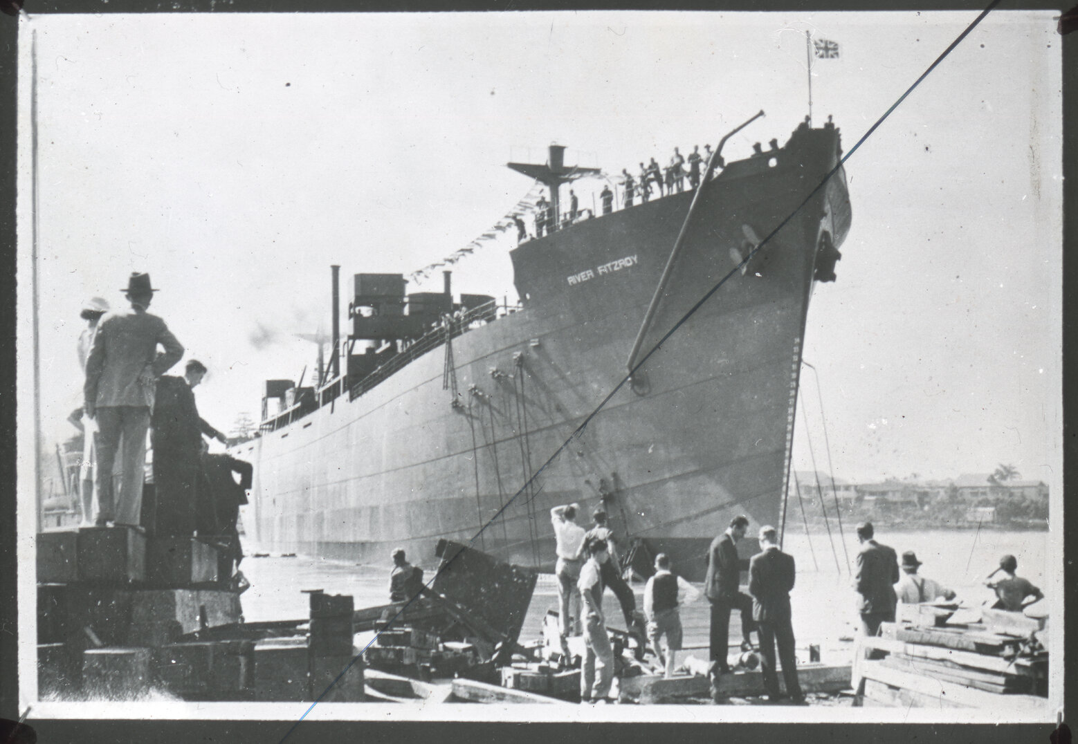 Newcastle State Dockyard, J. Price, Ship 'River Fitzroy' being launched from State Dockyard, 1941 (1941), [2008-245-01]. Living Histories, accessed 21/04/2026, https://livinghistories.newcastle.edu.au/nodes/view/119401