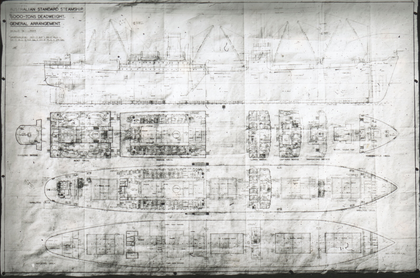 Newcastle State Dockyard, J. Price, Australian Standard Steamship Design Plans, [2008-245-27]. Living Histories, accessed 24/04/2026, https://livinghistories.newcastle.edu.au/nodes/view/119427