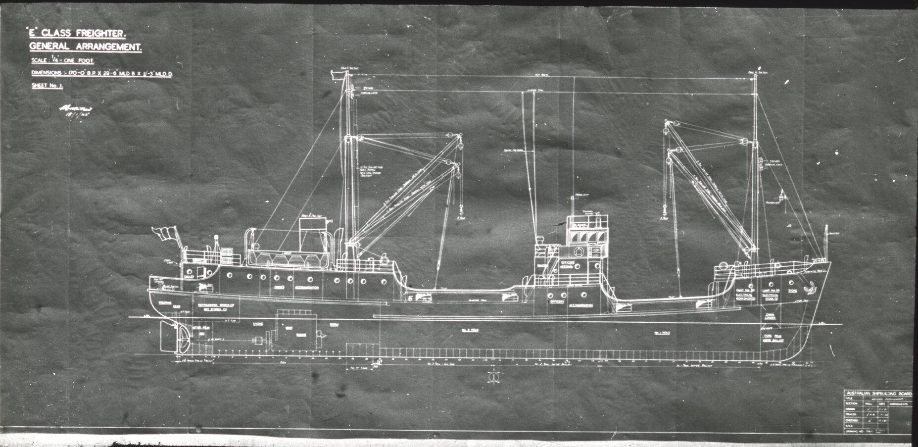 Newcastle State Dockyard, J. Price, E Class Freighter Design Plans, [2008-245-28]. Living Histories, accessed 24/04/2026, https://livinghistories.newcastle.edu.au/nodes/view/119428