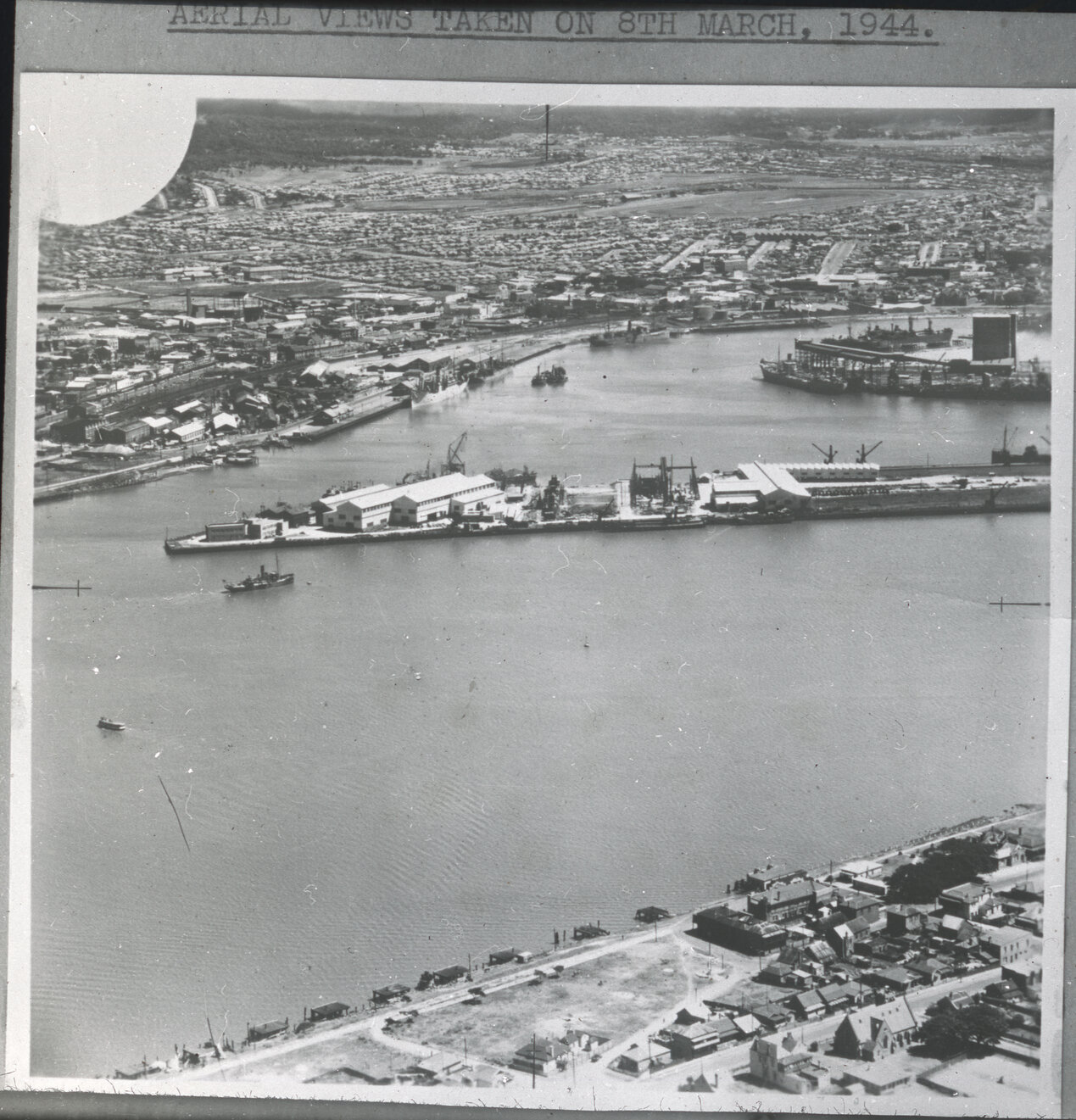 Newcastle State Dockyard, J. Price, Aerial View of Newcastle State Dockyard, 8 March 1944 (8 March 1944), [2008-245-42]. Living Histories, accessed 24/04/2026, https://livinghistories.newcastle.edu.au/nodes/view/119442