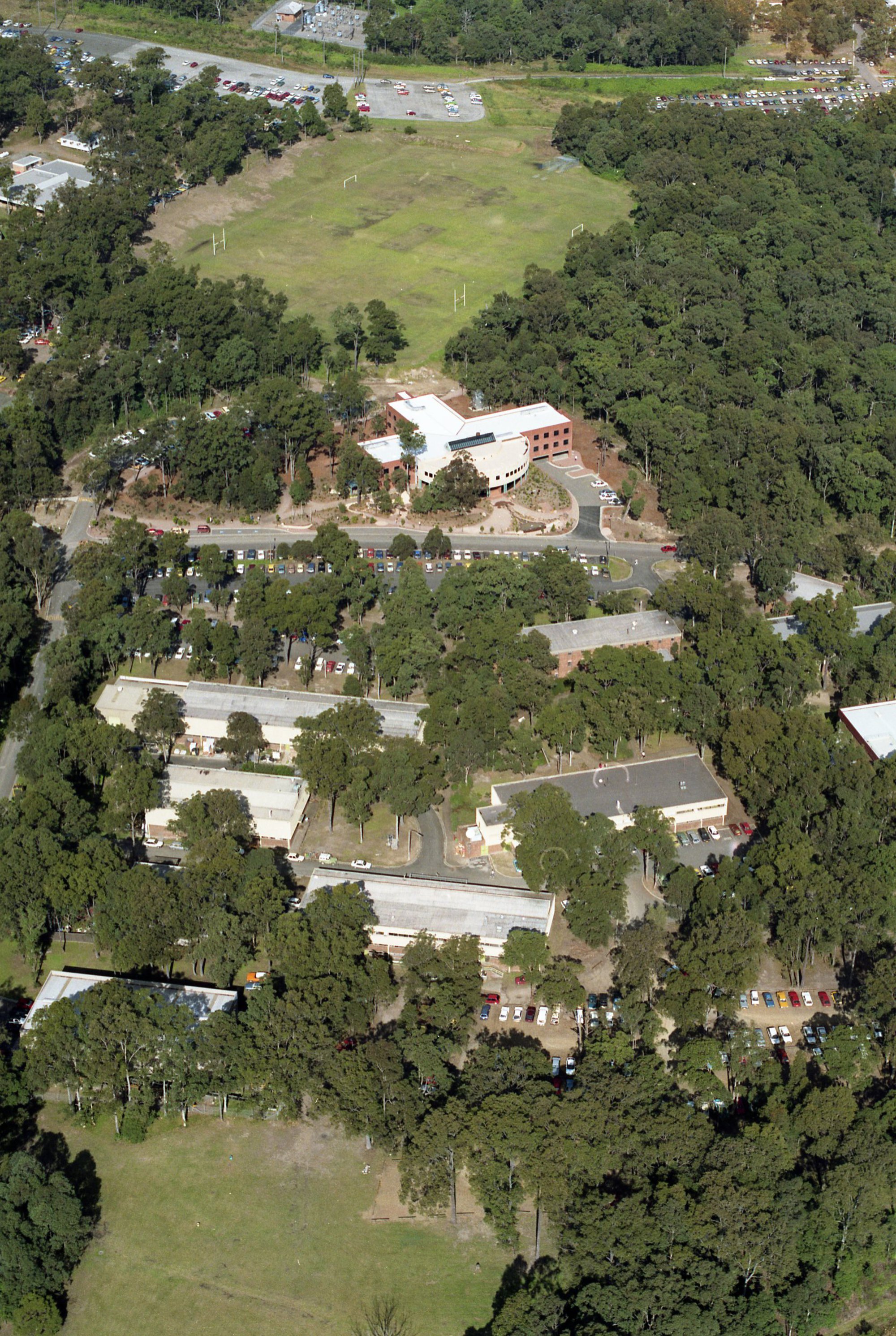 Aerial view of the The Chancellery and Engineering Buildings, the University of Newcastle, Australia - 1992